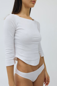An ode to 60s icon Jane Birkin and the saccharine style of ballet dancers off-duty. The Rina Longsleeve features bell sleeves, a dipped front, and a delicate picot trim. FABRIC & CARE Consciously made with the highest quality, super-soft 100% Organic Cotton. Fabric: 100% Organic Cotton Jersey Gusset Liner: 100% Organic Cotton Picot Trim: 70% Polyamide and 30% Spandex To take care and keep your Cou Cou's looking cuter, for longer, just wash your pieces on gentle, lay flat to dry & voila! These more gentle care methods aren’t just better for your Cou Cou's, they’re better for the planet, too. Designed in London. Made in Portugal. SIZE & FIT Featuring bell sleeves, a dipped front, and a delicate picot trim. The Rina Longsleeve is considered true to size. If you’re in between sizing, we recommend sizing up. Jessica wears a size S.