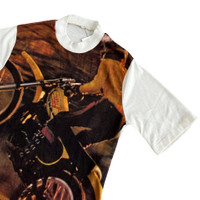 Vintage 70s Full Print Motorcycle T-Shirt SZ S