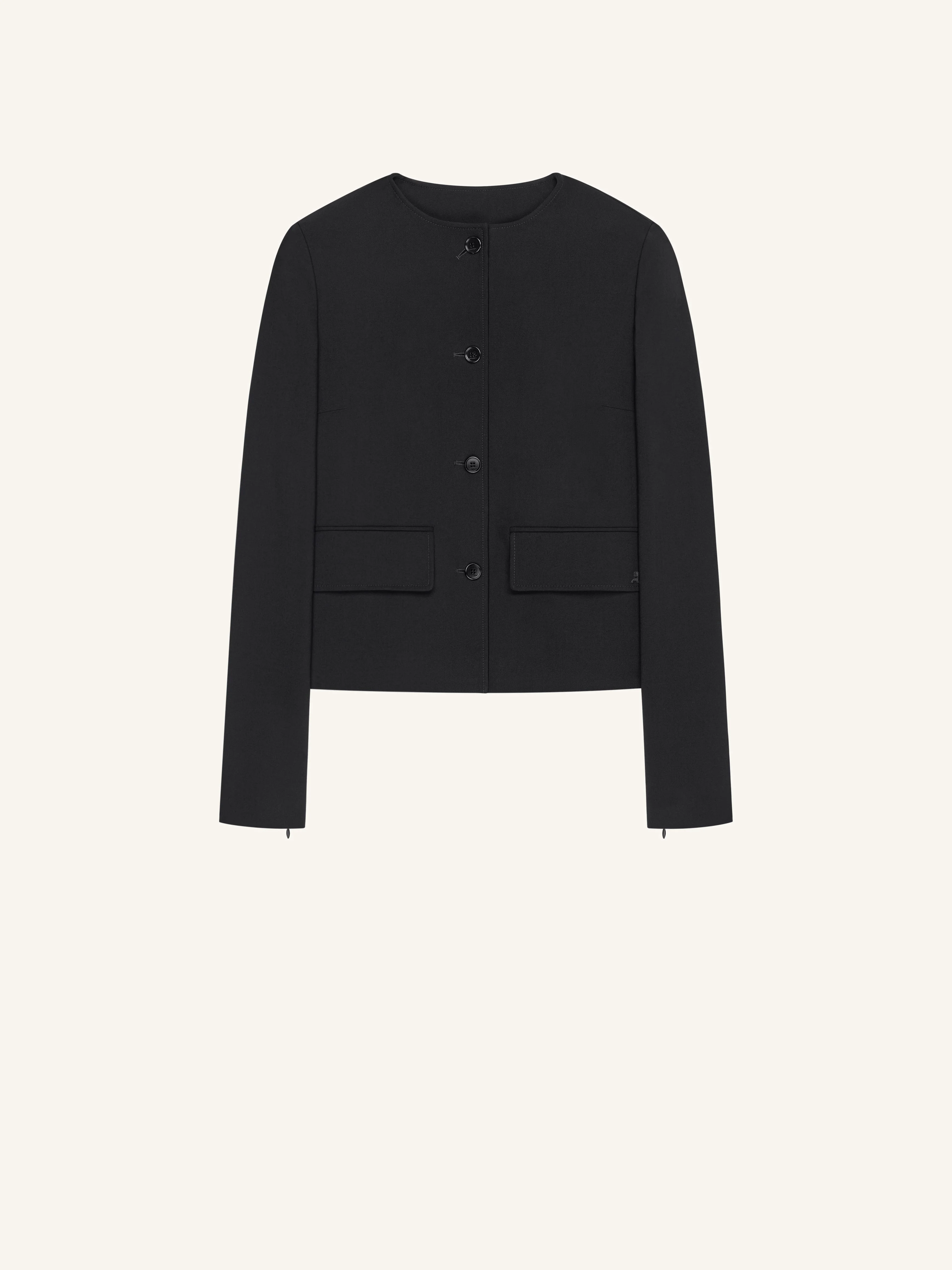 Heritage jacket with two front flap pockets and back belt. Embroidered AC logo, zipped sleeves and front button closure. The model is 1.77m and wears a size 36. DETAILS Composition: 51% polyester , 41% silk , 8% others Country of Manufacture: SK SKU: 126CVE145PL01709999 Color: Black
