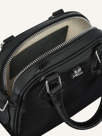Naplack leather mini Bowling bag with AC logo on front and a key ring. Metal zipper closure. Short handles with removable and adjustable shoulder strap. Inside pocket. Length: 18 cm Height: 24 cm DETAILS Composition: 100% cow leather Country of Manufacture: IT SKU: 125GSA132CR00439999 Color: Black