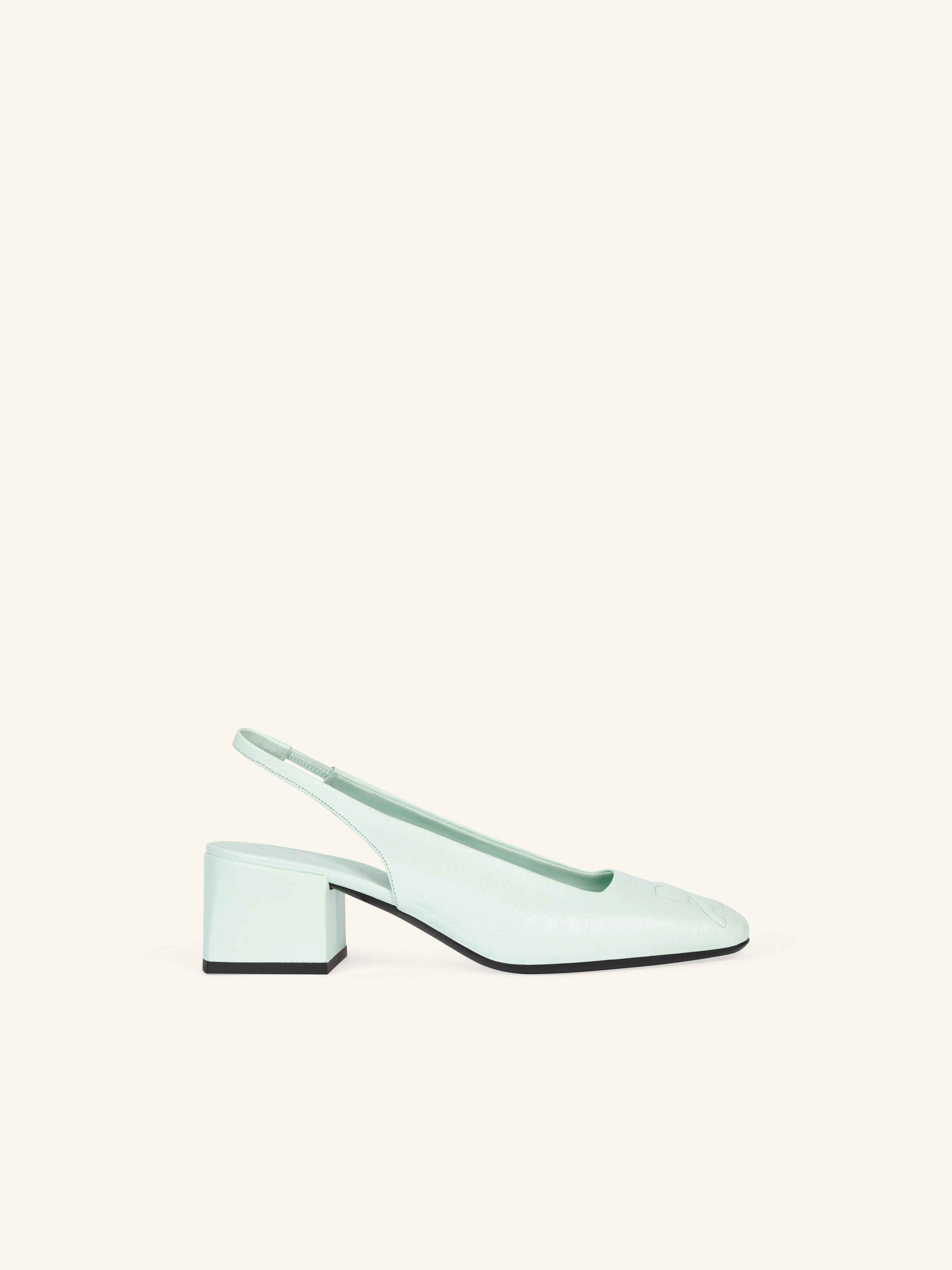 Vinyl heeled slingbacks with shadow AC logo on front. Heel height : 55 mm DETAILS Composition: 88% cotton, 10% polyurethane, 2% elastane Country of Manufacture: IT SKU: 325SPP039VY00037038 Color: Light mint