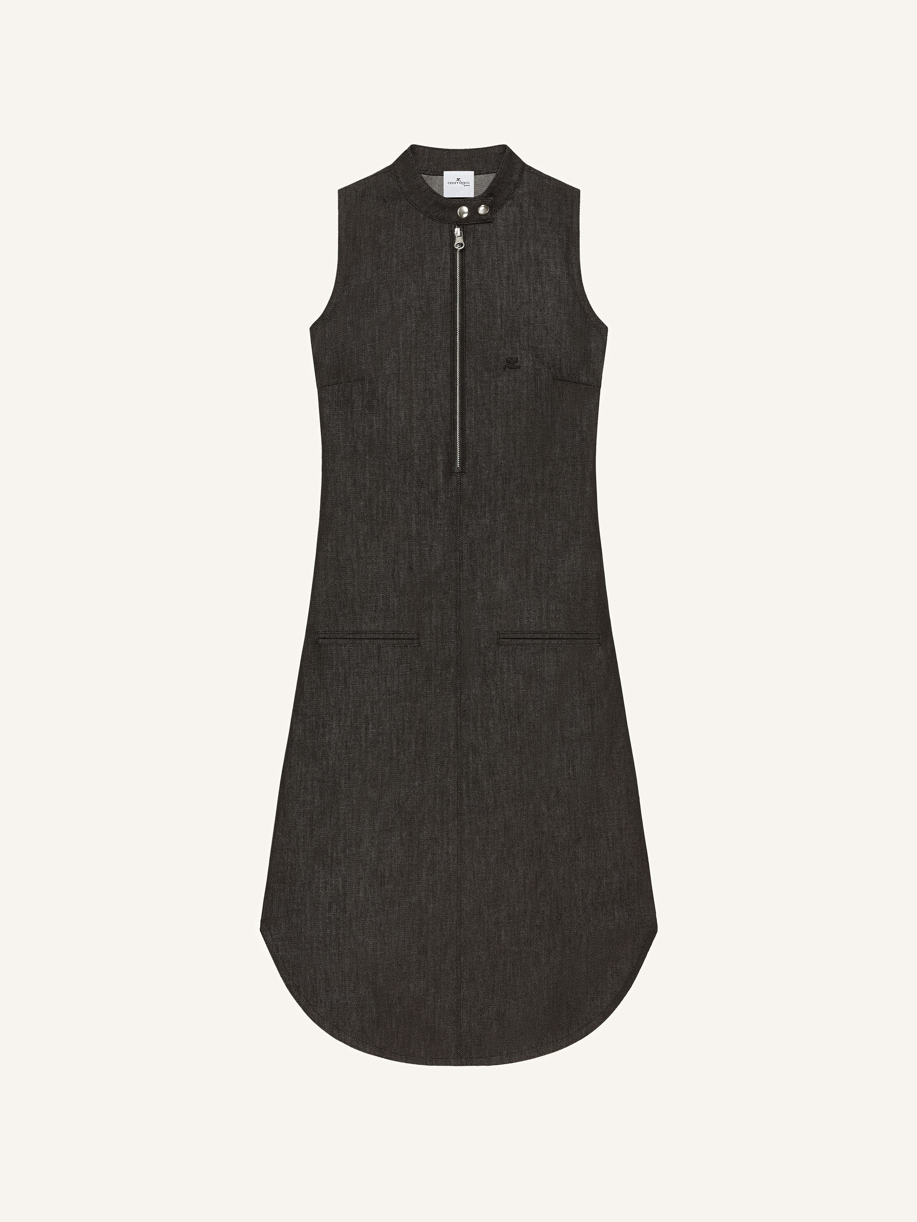 Biker style sleeveless dress with adjustable collar and AC logo on chest. Zipped fastening and two welt pockets on front. The model is 1.77m tall and wears a size 36. DETAILS Composition: 98% cotton, 2% elastane Country of Manufacture: IT SKU: 325DRO701DE00449999 Color: Black