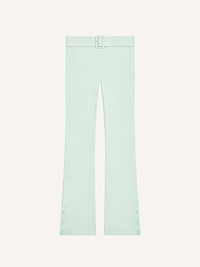 Rib-knit capri trousers with buckle detail at the waist. The model is 1.79m and wears a size S. DETAILS Composition: 70% viscose , 30% polyester Country of Manufacture: BG SKU: 126MPA677FI00017038 Color: Light mint