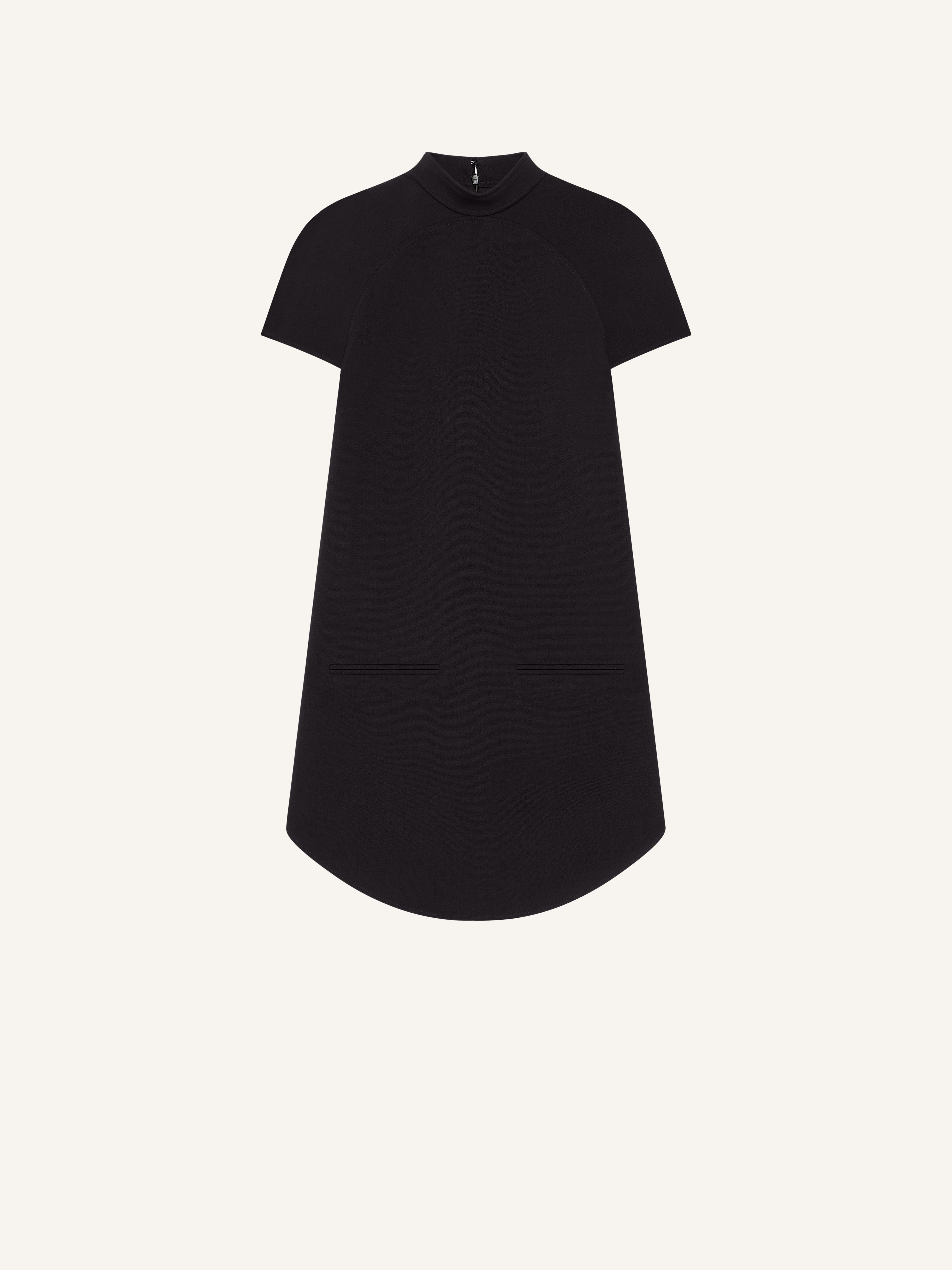 Short-sleeved mockneck wool dress with zipped fastening at back and two front welt pockets. The model is 1.77m tall and wears a size 36. DETAILS Composition: 45% polyester, 36% wool, 16% polyamide, 3% lyocell Country of Manufacture: RS SKU: 325CRO681WO01439999 Color: Black