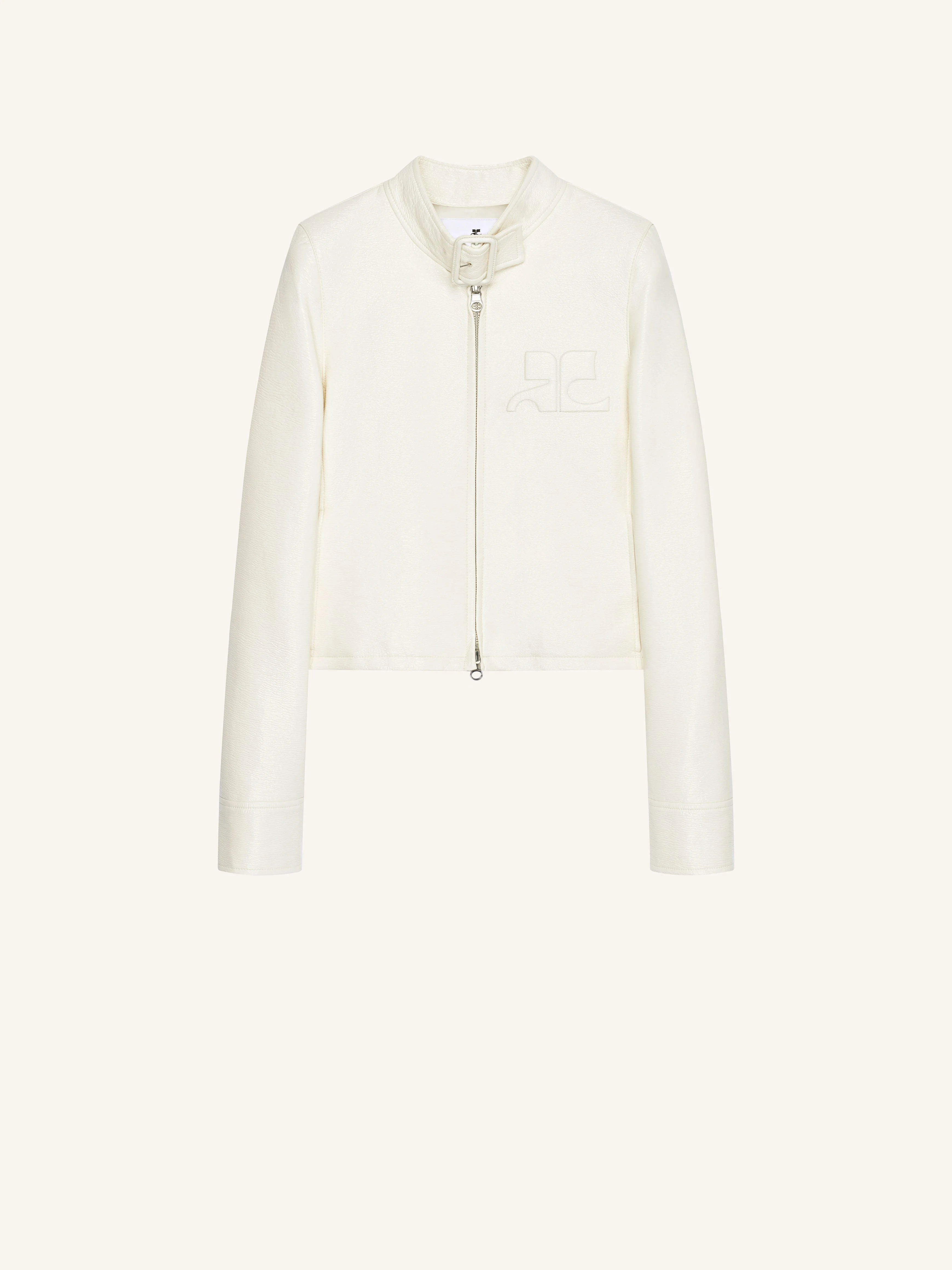 City style vinyl jacket with AC shadow logo on chest and adjustable buckle at the collar. The model is 1.80m and wears a size 36. DETAILS Composition: 88% cotton, 10% polyurethane, 2% elastane Country of Manufacture: SK SKU: 126CBL331VY00140018 Color: Light Bones