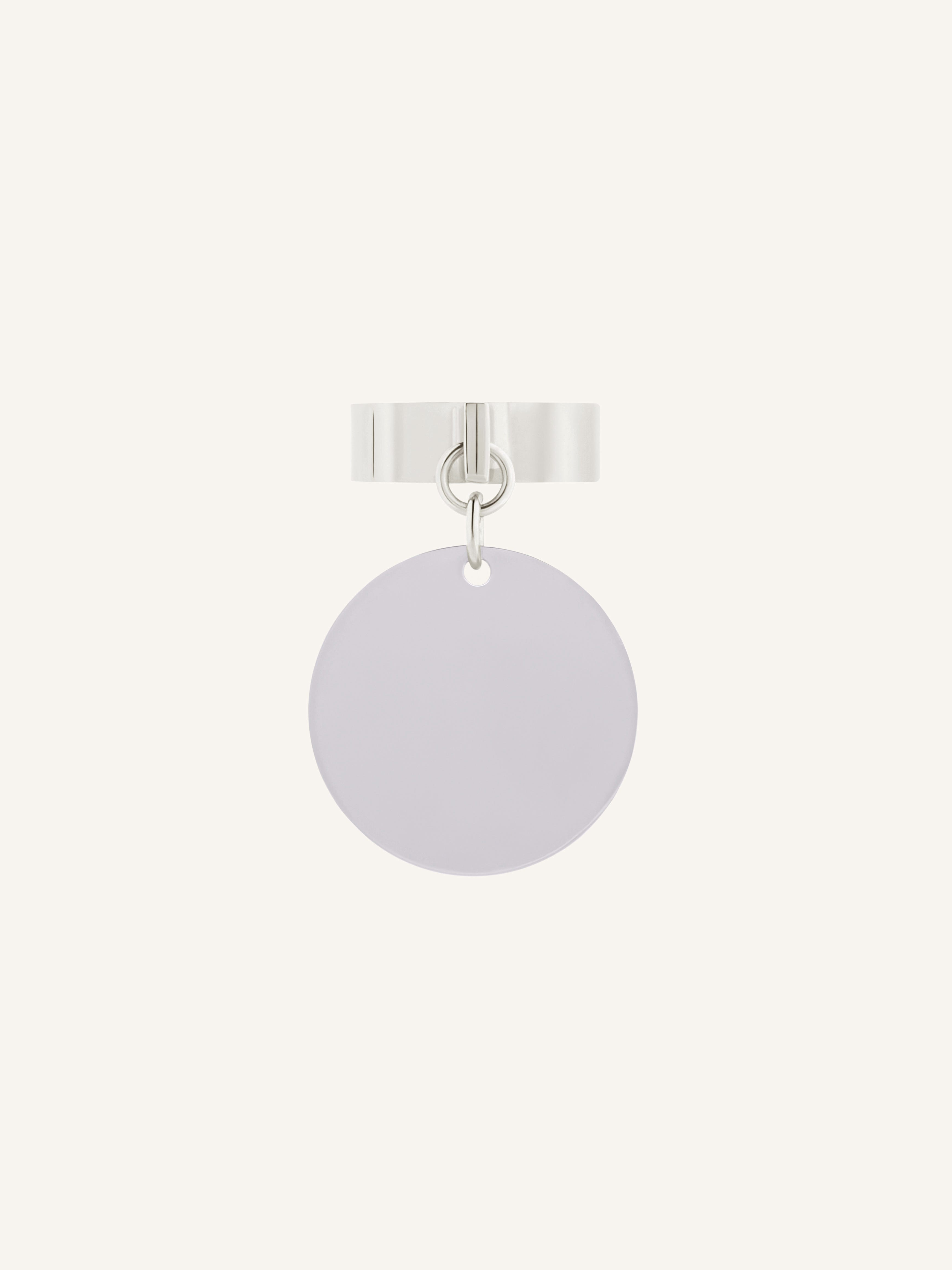 Silver-plated brass "Folded Confetti" ring with circular pendant. Engraved Courreges logo at the back. DETAILS Composition: 100% brass Country of Manufacture: IT SKU: 425BBG044LA00016049 Color: Lilac Pink