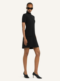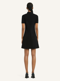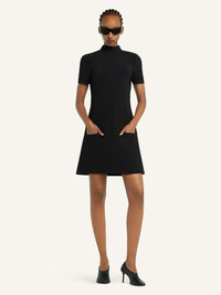 Heritage short-sleeved A-line dress with high-neck collar. Two front welt pockets and AC logo on bottom. The model is 1.75m tall and wears a size 36. DETAILS Composition: 89% polyester, 11% polyurethane Country of Manufacture: RS SKU: 125CRO593PL01599999 Color: Black