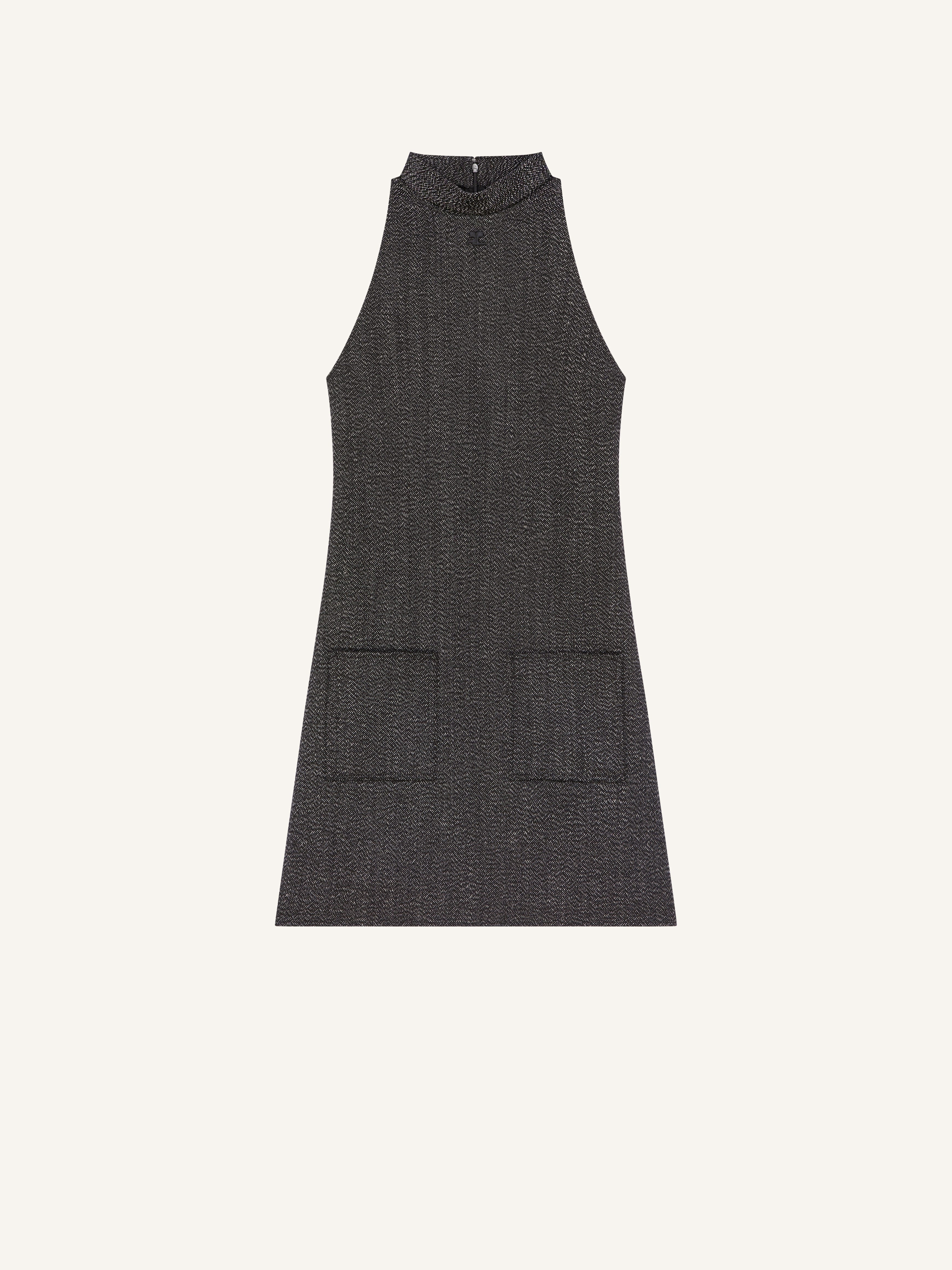 Sleeveless A-line mockneck caviar wool dress with two front welt pockets and embroidered AC logo below neckline. The model is 1.77m tall and wears a size 36. DETAILS Composition: 100% wool Country of Manufacture: RS SKU: 325CRO671WO01449901 Color: Black/Heritage White