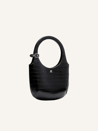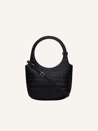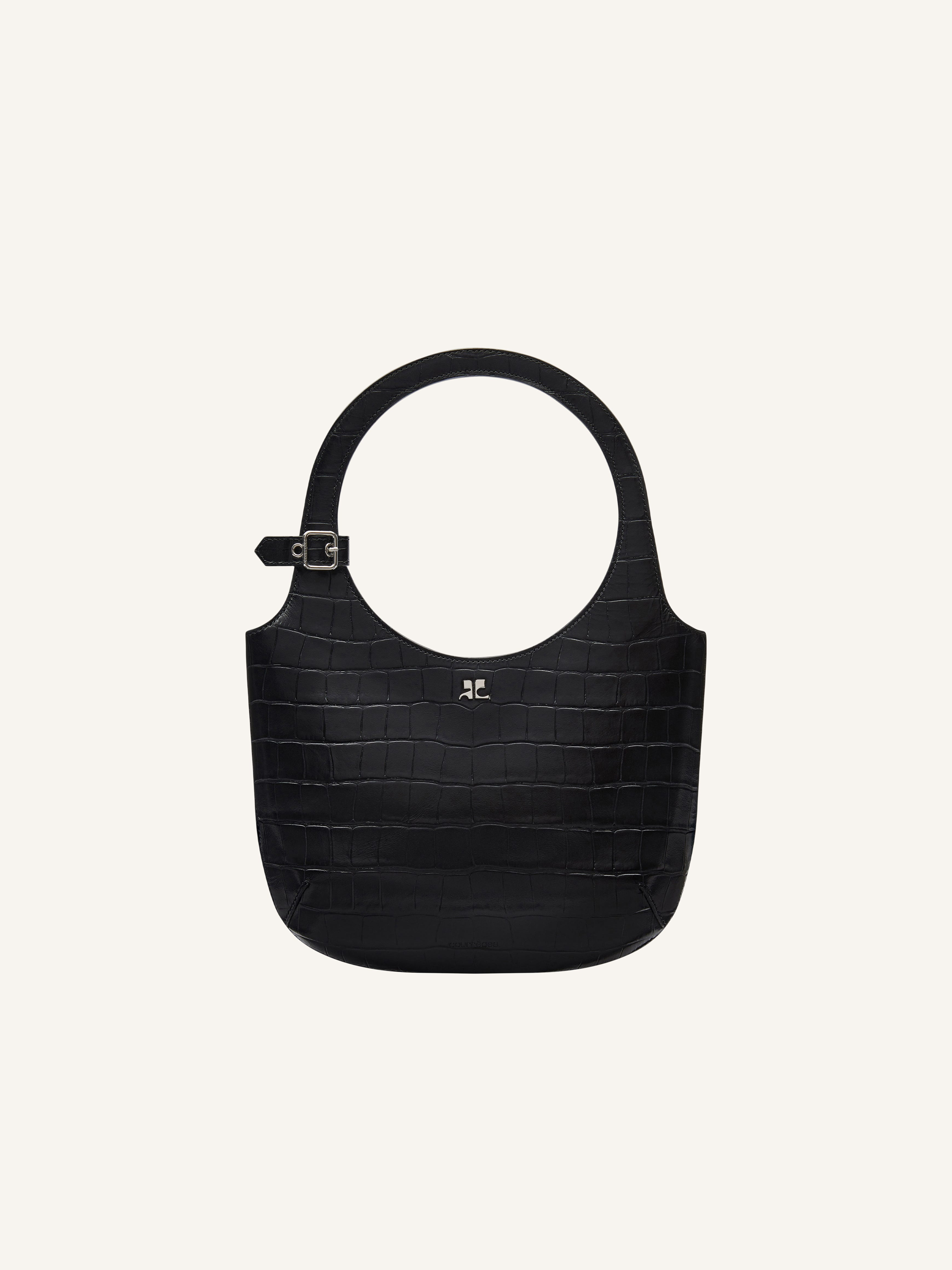 Croco embossed leather Holy bag with magnetic closure and metallic AC logo. Embossed Courreges logo on front. Buckle detail on handles and interior pocket. Adjustable and removable shoulder strap. Length: 19 cm Height: 34 cm Width: 24 cm DETAILS Composition: 100% embossed cow leather Country of Manufacture: IT SKU: 224GSA102CR00609999 Color: Black