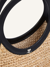 Holy bag in handwoven natural raffia with leather details. Magnetic closure and metallic AC logo. Buckle detail on handles. Length: 15 cm Height: 35 cm Opening width: 25 cm DETAILS Composition: 100% raffia Country of Manufacture: MG SKU: 225GSA175RA00010079 Color: Natural Beige