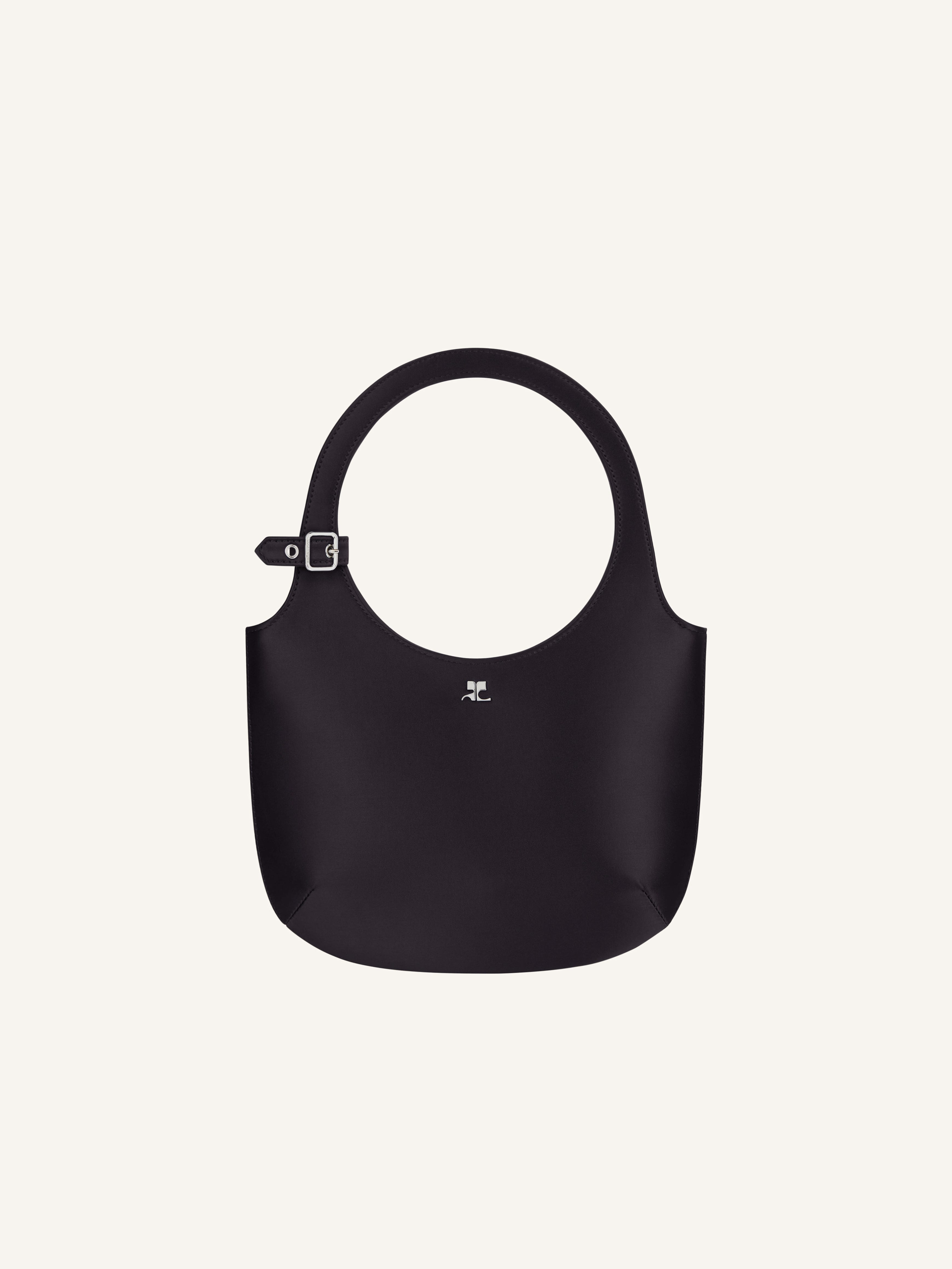 Satin Holy bag with magnetic closure and metallic AC logo. Buckle detail on handles and interior pocket. Adjustable and removable shoulder strap. Length: 19 cm Height: 34 cm Opening width: 24 cm Strap length: 94 cm DETAILS Composition: 97% polyester , 3% elastane Country of Manufacture: IT SKU: 225GSA102PL00849999 Color: Black