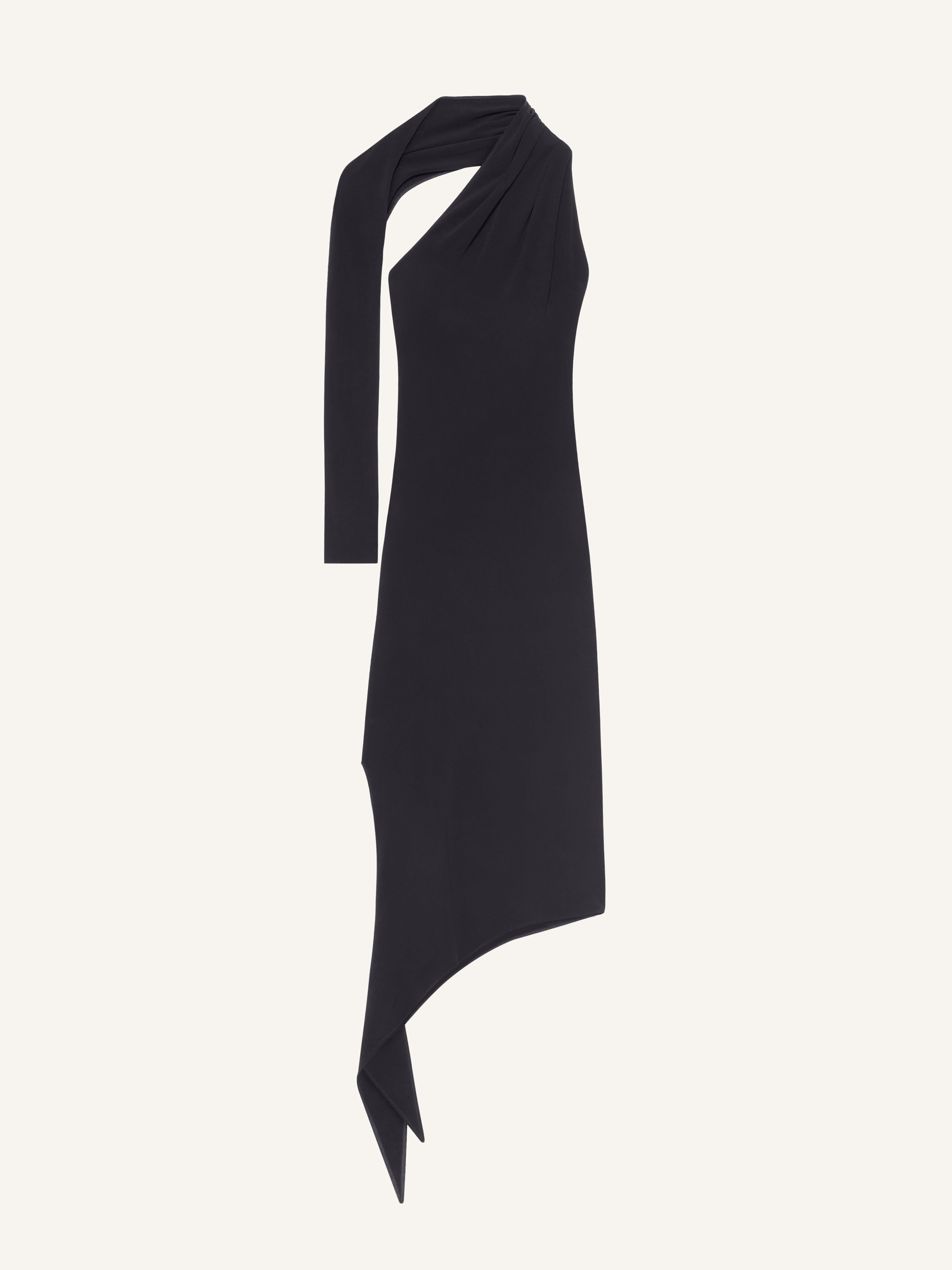 Long one-sleeve fluid crepe dress. Slit on the side and bare upper back. DETAILS Composition: 95% viscose, 5% elastane Country of Manufacture: PT SKU: 424JRO523JS01459999 Color: Black