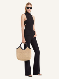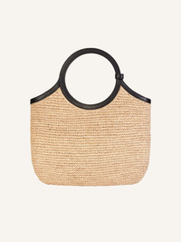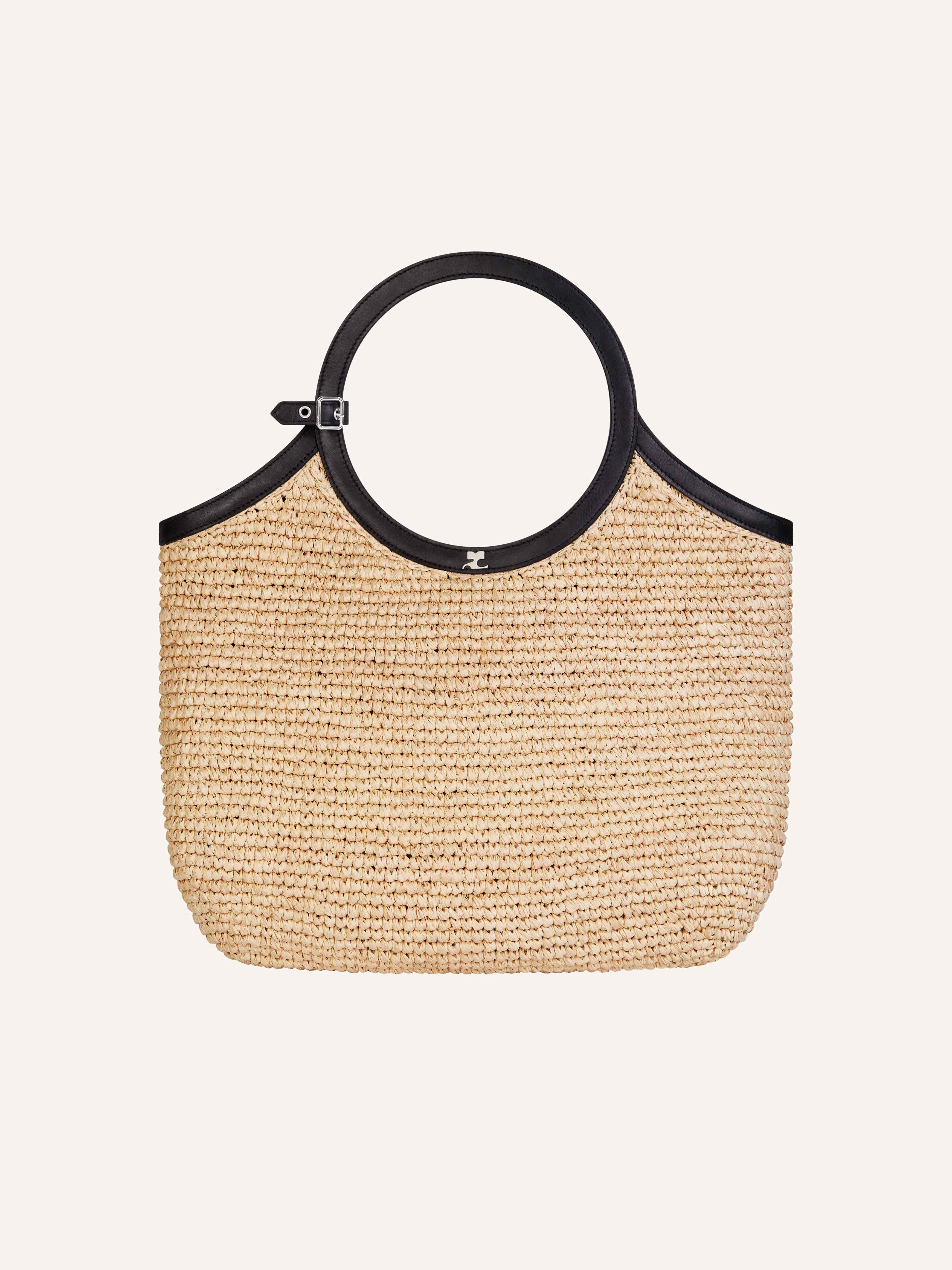 Medium-sized Holy bag in hand-woven natural raffia with leather details. Magnetic closure and metallic AC logo. Buckle detail on handles. Length: 28 cm Height: 46 cm Opening width: 40 cm DETAILS Composition: 100% raffia Country of Manufacture: MG SKU: 225GSA180RA00010079 Color: Natural Beige