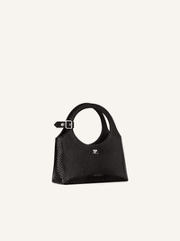 Viper effect calf leather Mini Holy Day bag. Zipped closure and metallic AC logo. Embossed "Courreges" logo on front. Buckle detail on handles and interior pocket. Adjustable and removable shoulder strap. Length: 18,5 cm Height: 20,5 cm Opening width: 17 cm Strap length: 107 cm DETAILS Composition: 100% calf leather Country of Manufacture: IT SKU: 325GSA163CV00459999 Color: Black