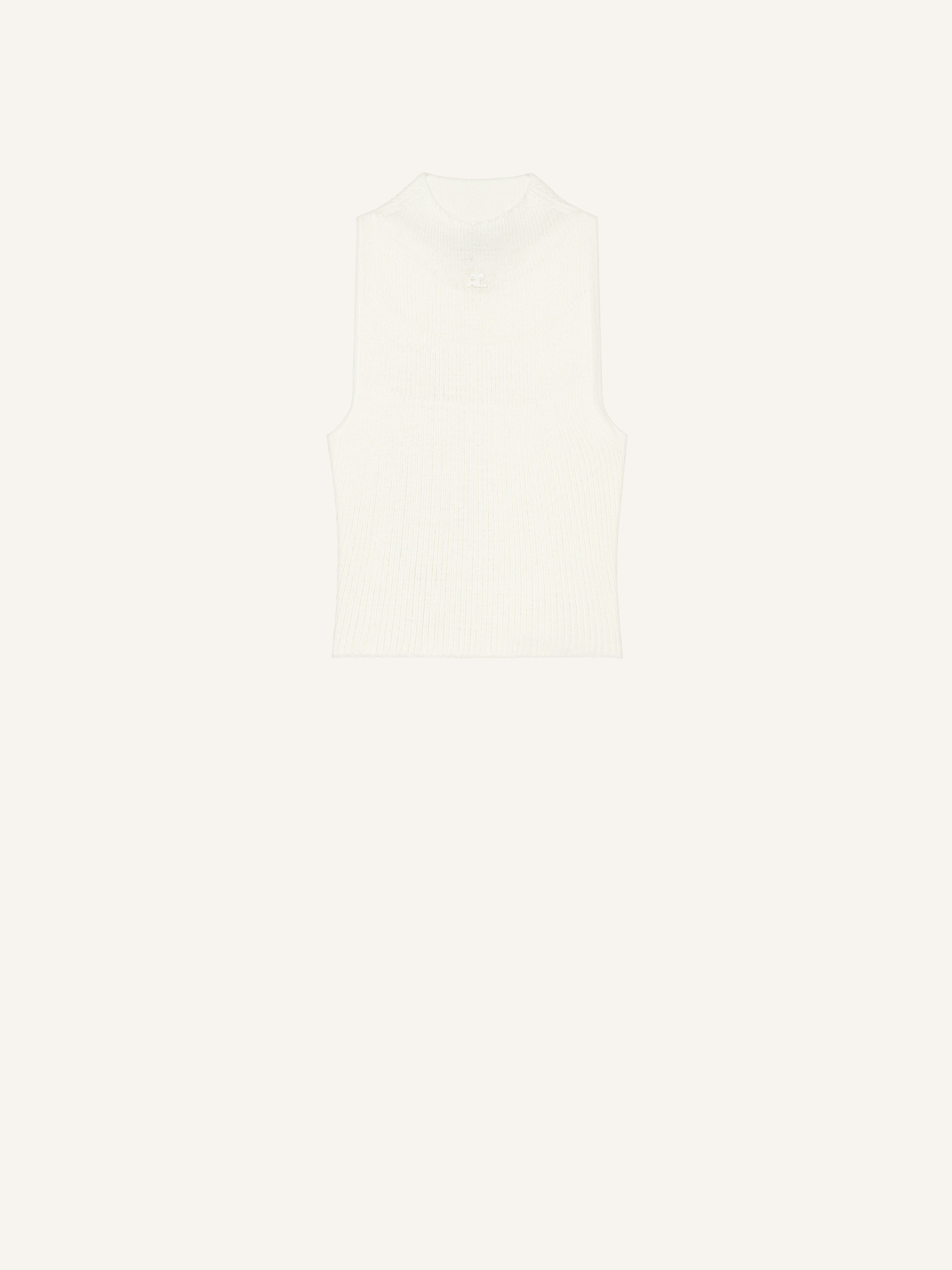 Sleeveless rib-knit mockneck cropped top with embroidered AC logo on chest. The model is 1.77m tall and wears a size S. DETAILS Composition: 80% cotton , 20% merino wool Country of Manufacture: IT SKU: 225MTO402FI00490001 Color: Heritage White