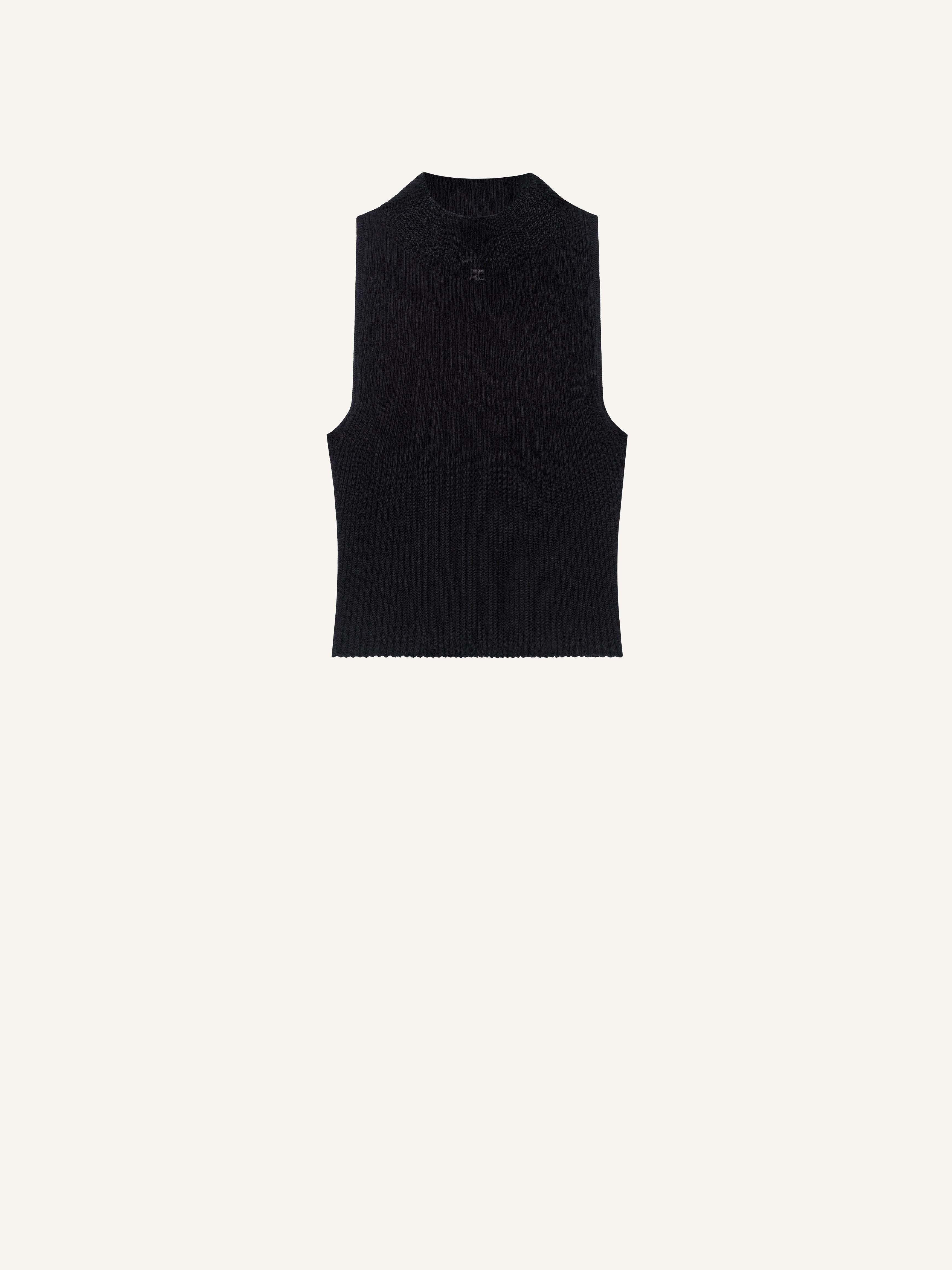 Sleeveless rib-knit mockneck cropped top with embroidered AC logo on chest. The model is 1.77m tall and wears a size S. DETAILS Composition: 80% cotton , 20% merino wool Country of Manufacture: IT SKU: 225MTO402FI00499999 Color: Black