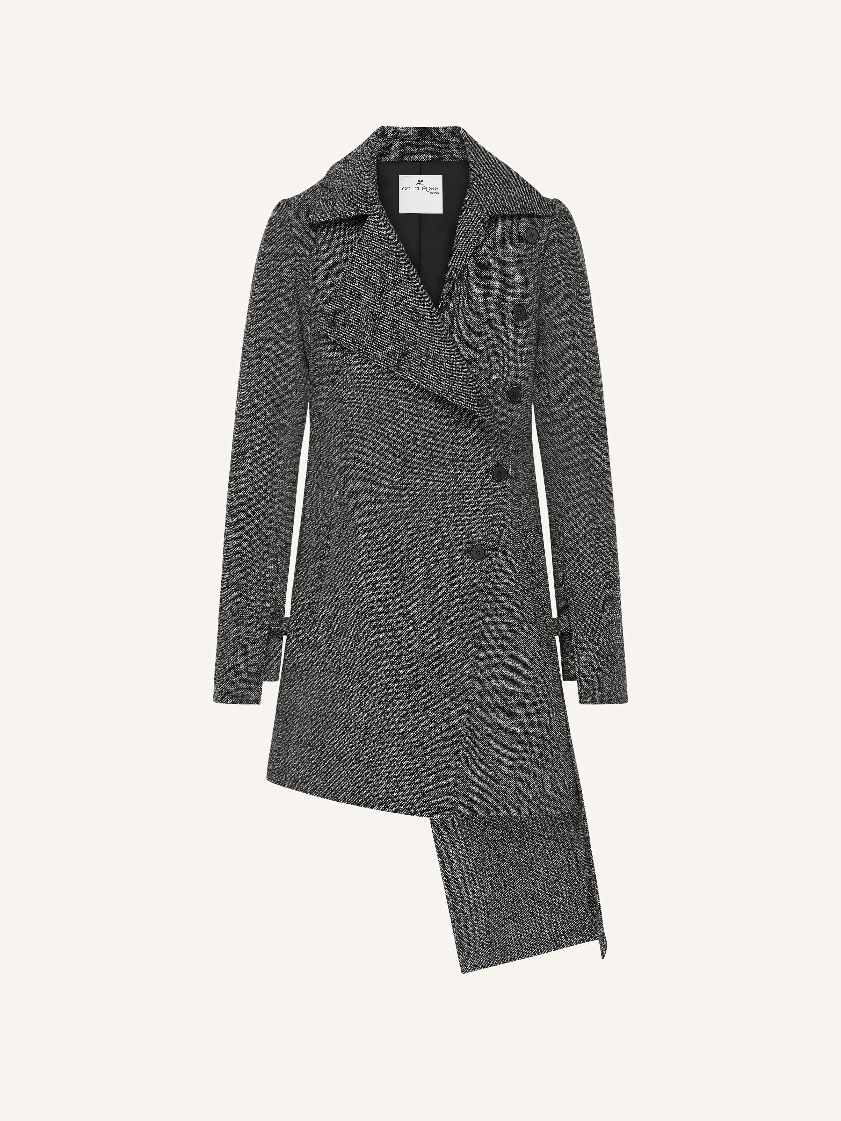 Short double breasted caviar wool coat with two side pockets. Sleeve detail and asymmetrical panel. The model is 1.78m tall and wears a size 36. DETAILS Composition: 100% wool Country of Manufacture: SK SKU: 425CMA251WO01509901 Color: Black/Heritage White