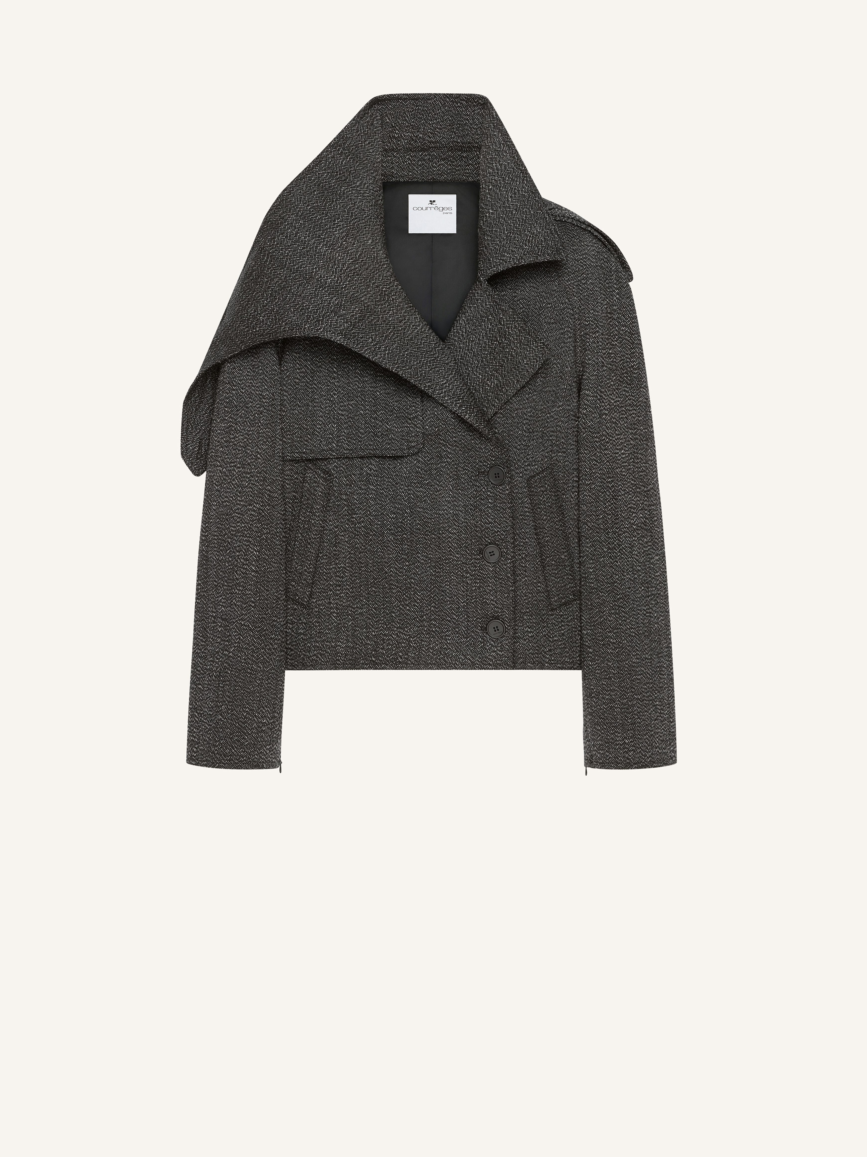 Short caviar wool coat with large collar and side pockets. Buttoned back belt. This item is unisex. The female model is 1.79m tall and the male model is 1.85m tall, both wearing size M. DETAILS Composition: 100% wool Country of Manufacture: RO SKU: 325CMA222WO01449901 Color: Black/Heritage White