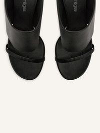 Cuff wedge that covers the foot, in lambskin leather. Adorned with a thin strap in front. Metallic AC logo at the back. Heel height : 90 mm DETAILS Composition: 100% sheep leather Country of Manufacture: IT SKU: 225SSD037AG00309999 Color: Black