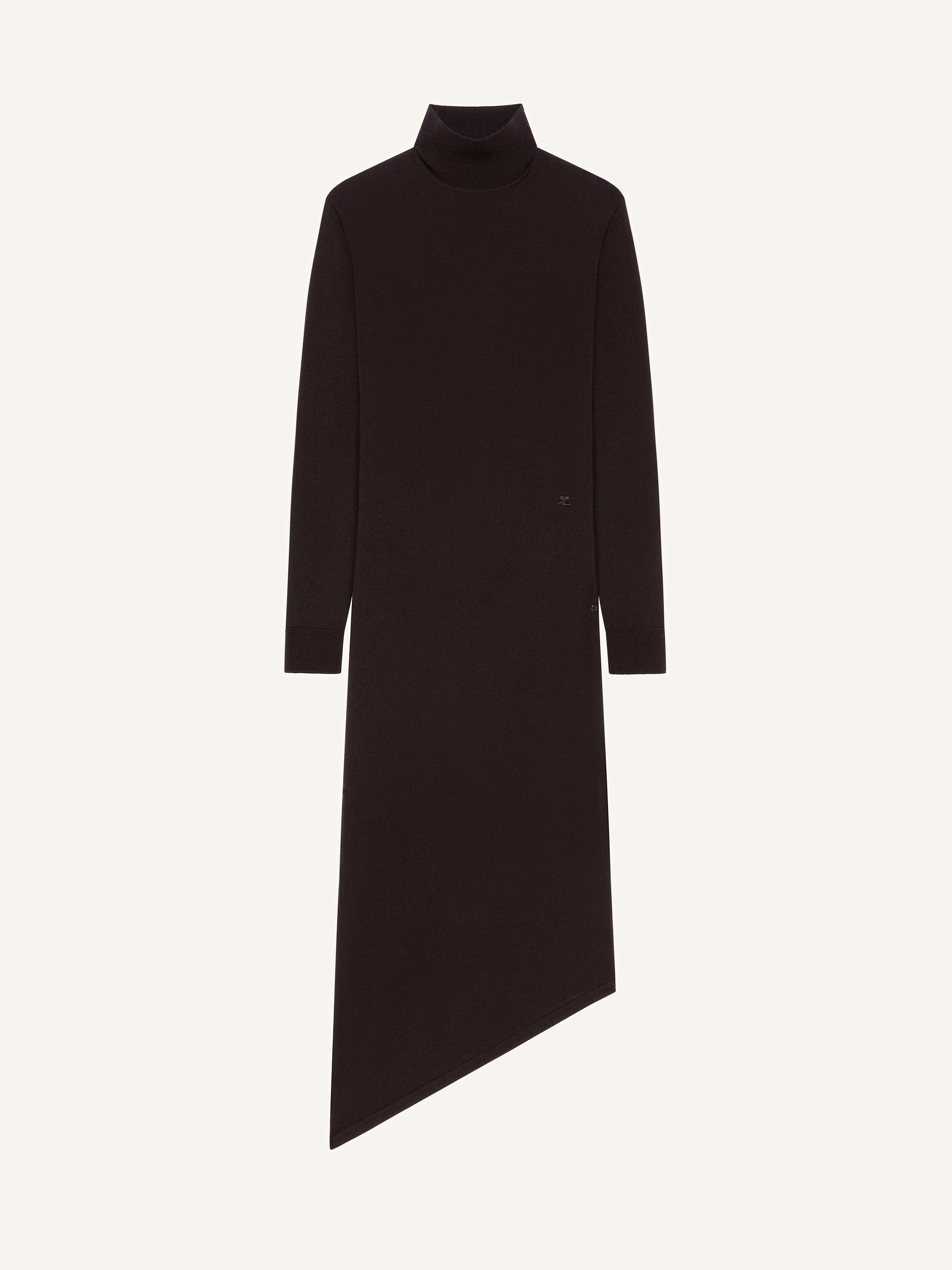 Asymmetrical long mockneck wool dress with adjustable sleeve. The model is 1.77m tall and wears a size S. DETAILS Composition: 100% merino wool Country of Manufacture: IT SKU: 325MRO689FI00711983 Color: Chocolate