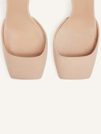 Square open toe jersey sandals adorned with a metal buckle strap that highlights the ankle and a lacquered heel. Metallic AC logo at the back. DETAILS Composition: 45% polyester, 40% polyamide, 15% elastane Country of Manufacture: IT SKU: 425SPP045PL00251150 Color: Latte