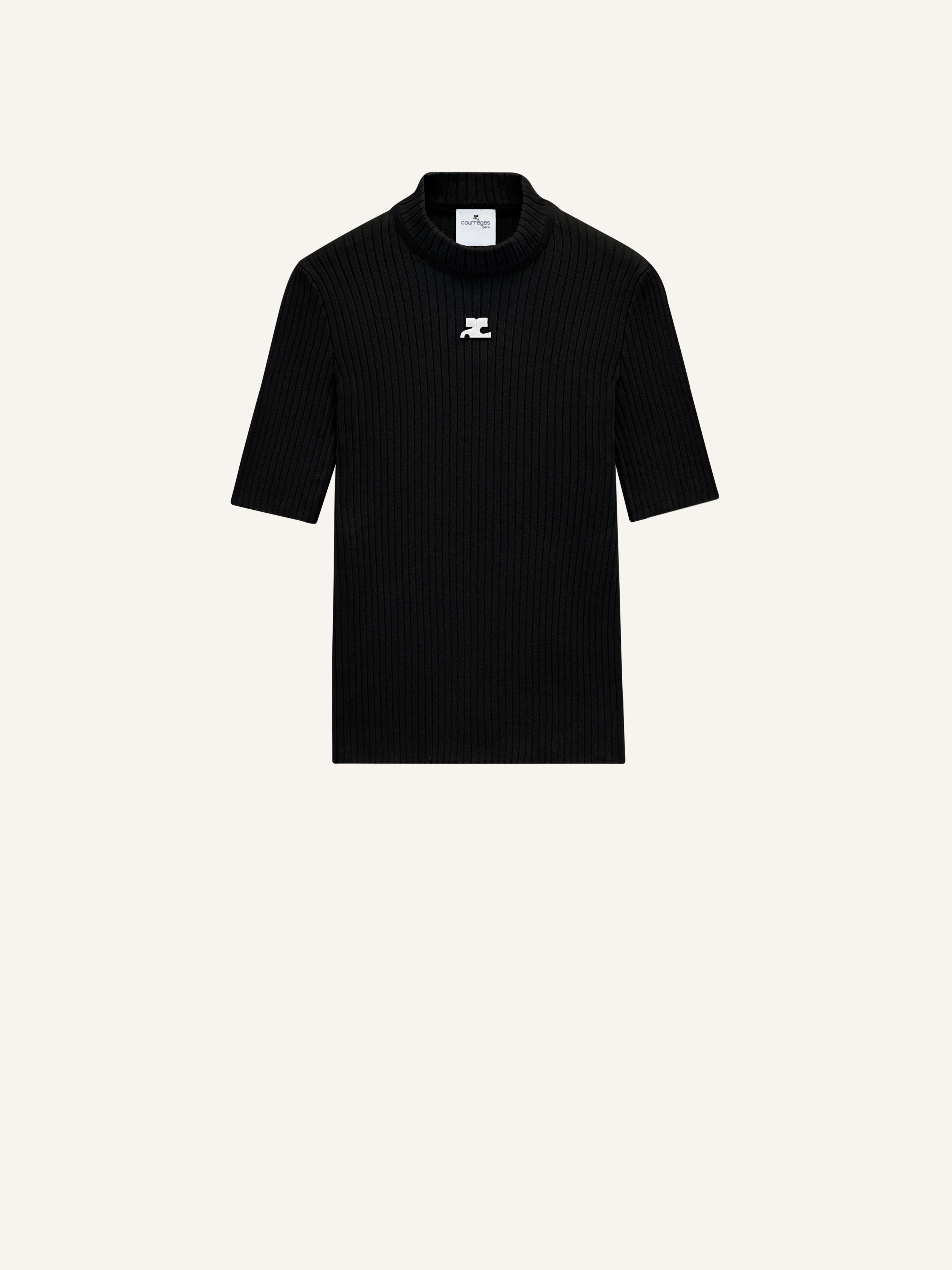 The ribbed knit is a timeless Courrèges piece. It is declined here in a short sleeves version with a high collar and enhanced on the front with our embroidered white AC logo. DETAILS Composition: PERMPU026FI0001 Country of manufacture: Bulgarie Colour: Noir Item code: PERMPU026FI00019999