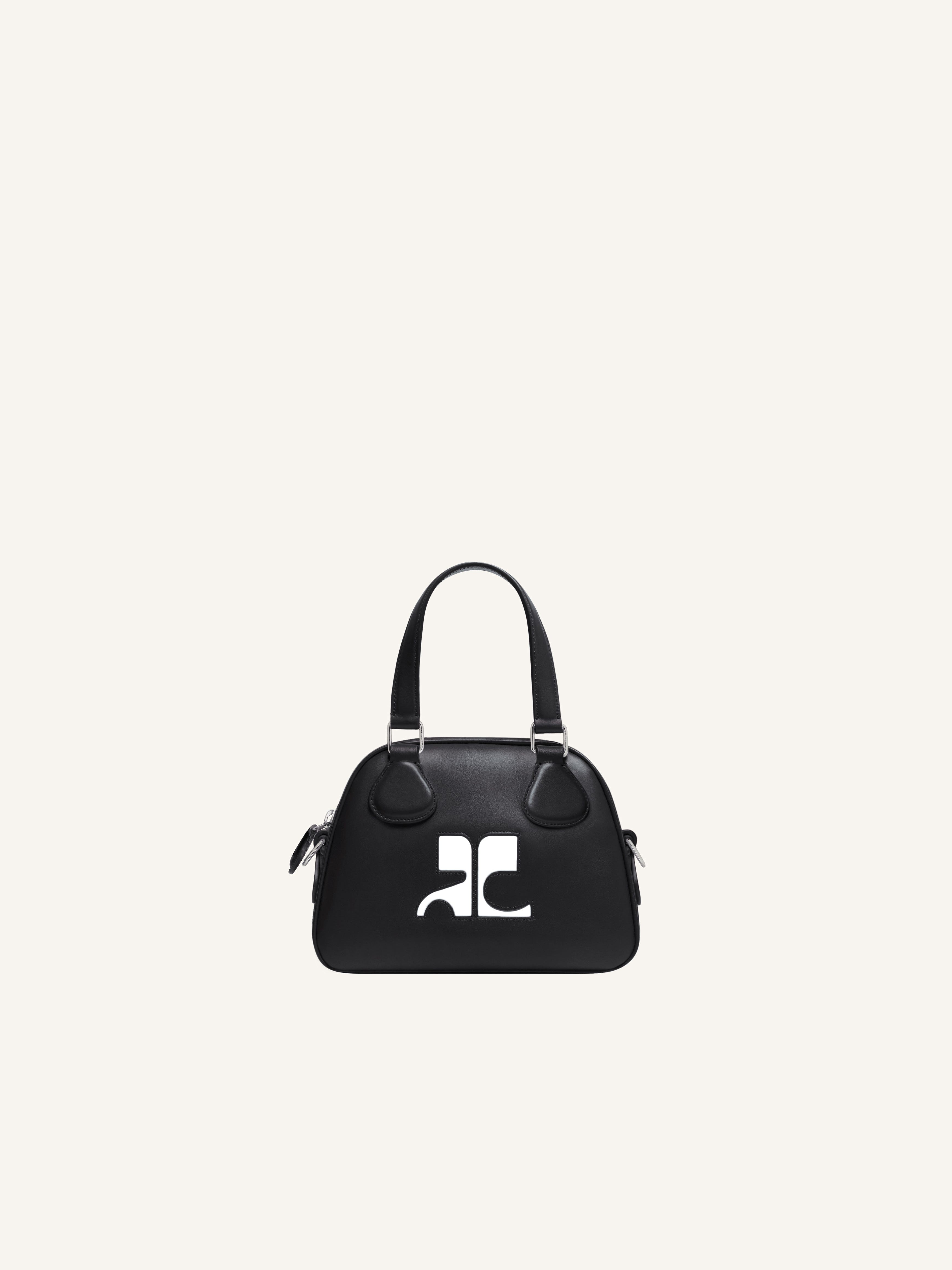 Iconic smooth leather mini Bowling Bag with incrusted AC logo on the front. Zipped metal closure. Short handles with an adjustable and removable strap. Inside pocket. Length: 17 cm bottom and 14 cm on top Height: 9 cm Width: 6 cm DETAILS Composition: 100% calf leather Country of Manufacture: IT SKU: PERGSA083CR00659999 Color: Black