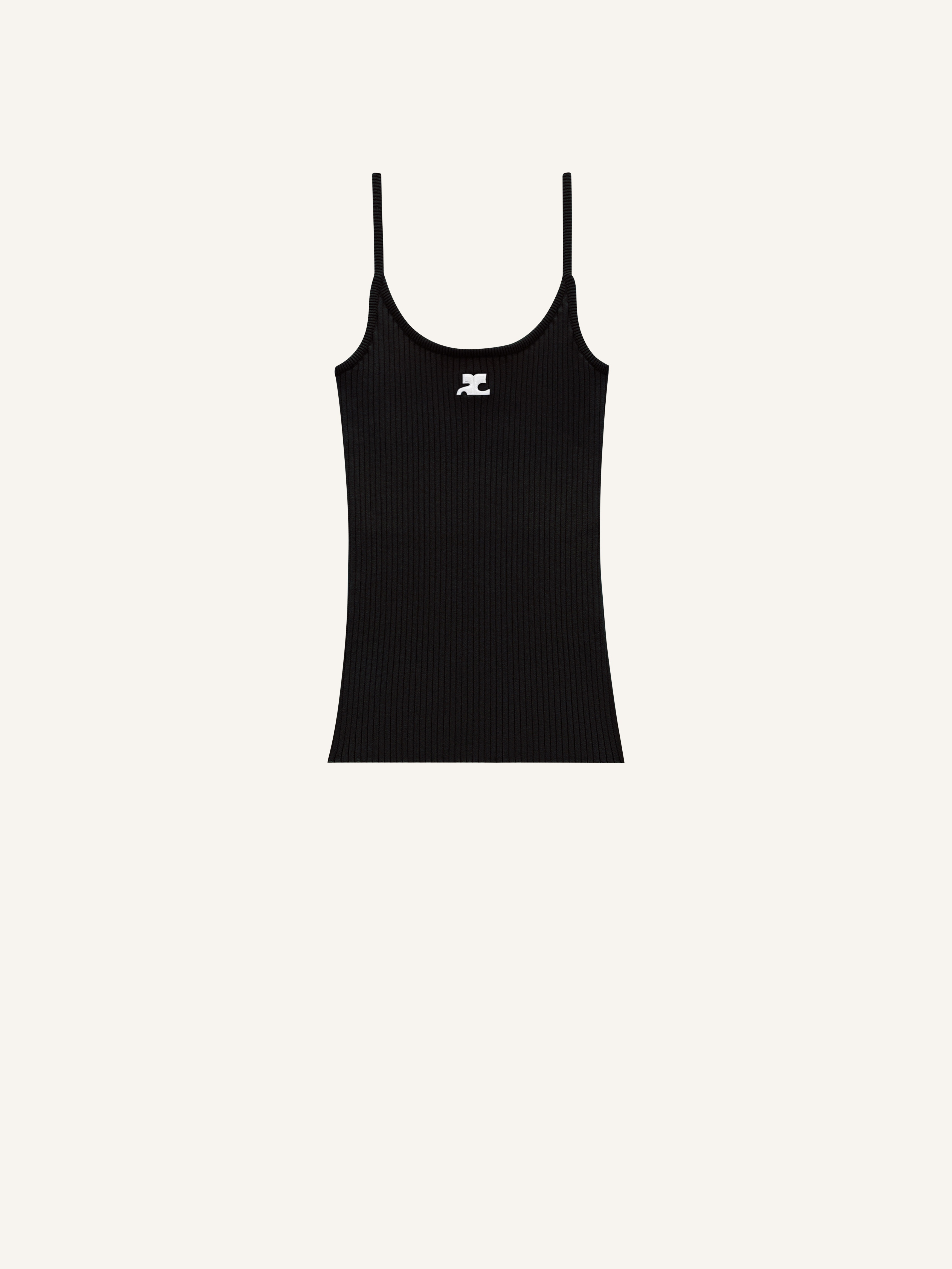 New in the Reeditions collection, Courrèges offers a tank top that uses the emblematic codes of the house's archives. DETAILS Composition : 70% VISCOSE 30% POLYESTER Color : Black Item code : PERMDE012FI00019999
