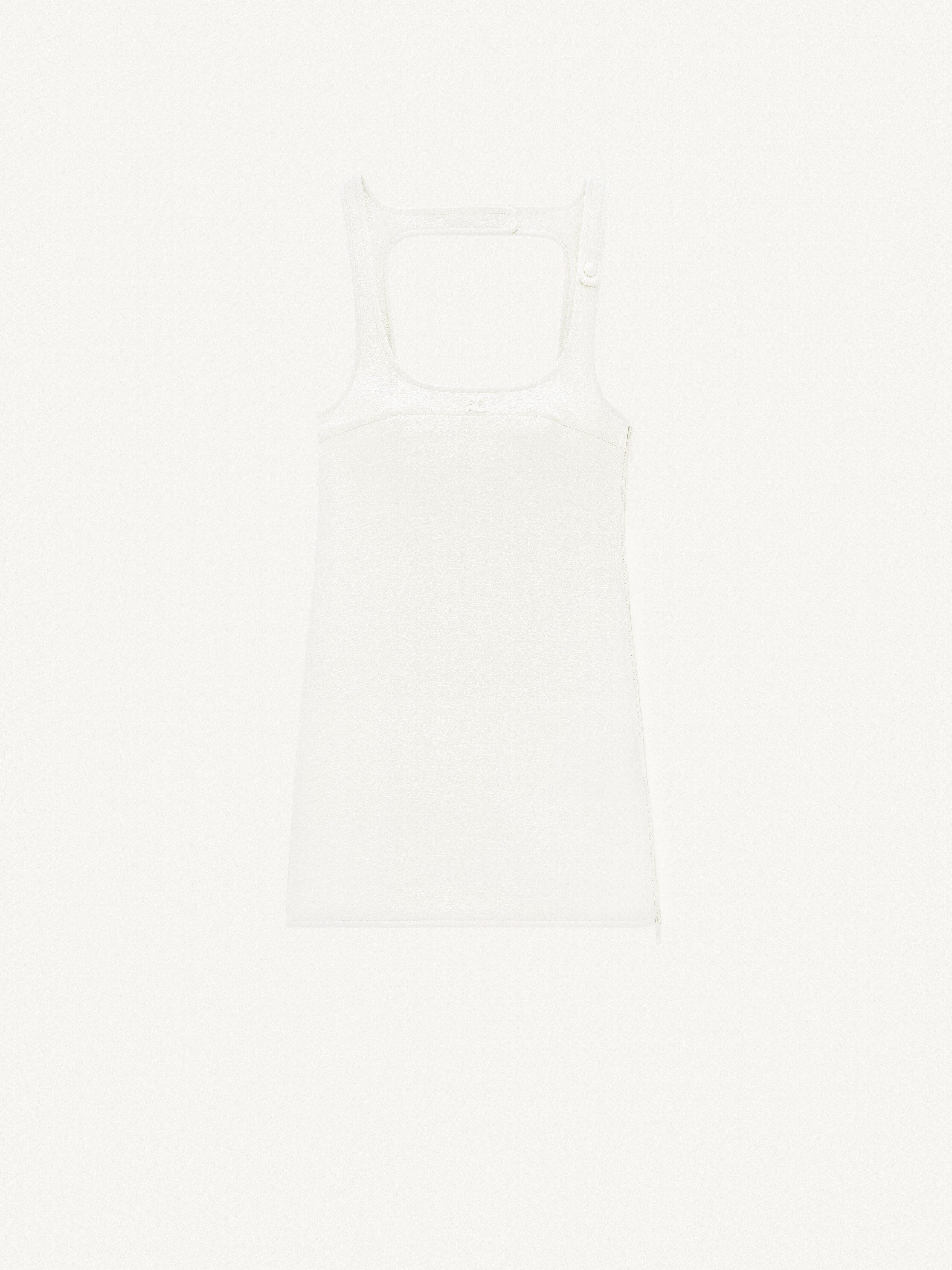 Sleeveless vinyl dress with straps. DETAILS Composition : 88% COTON 10% POLYURETHANE 2% ELASTHANE 100% CUPRO Color : Heritage white Item code : PERCRO036VY00140001