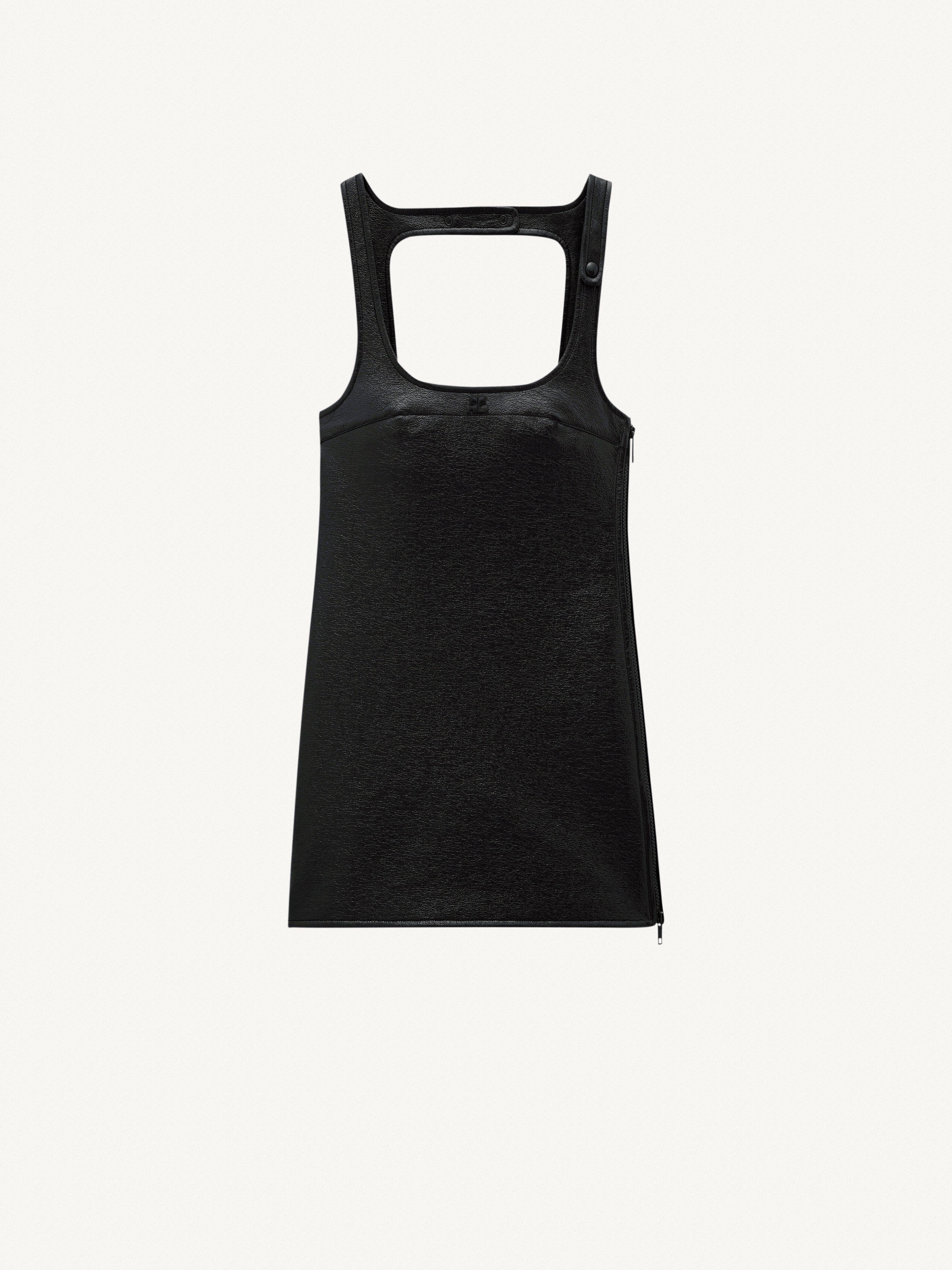 Sleeveless vinyl dress with straps. DETAILS Composition : 88% COTON 10% POLYURETHANE 2% ELASTHANE 100% CUPRO Color : Black Item code : PERCRO036VY00149999