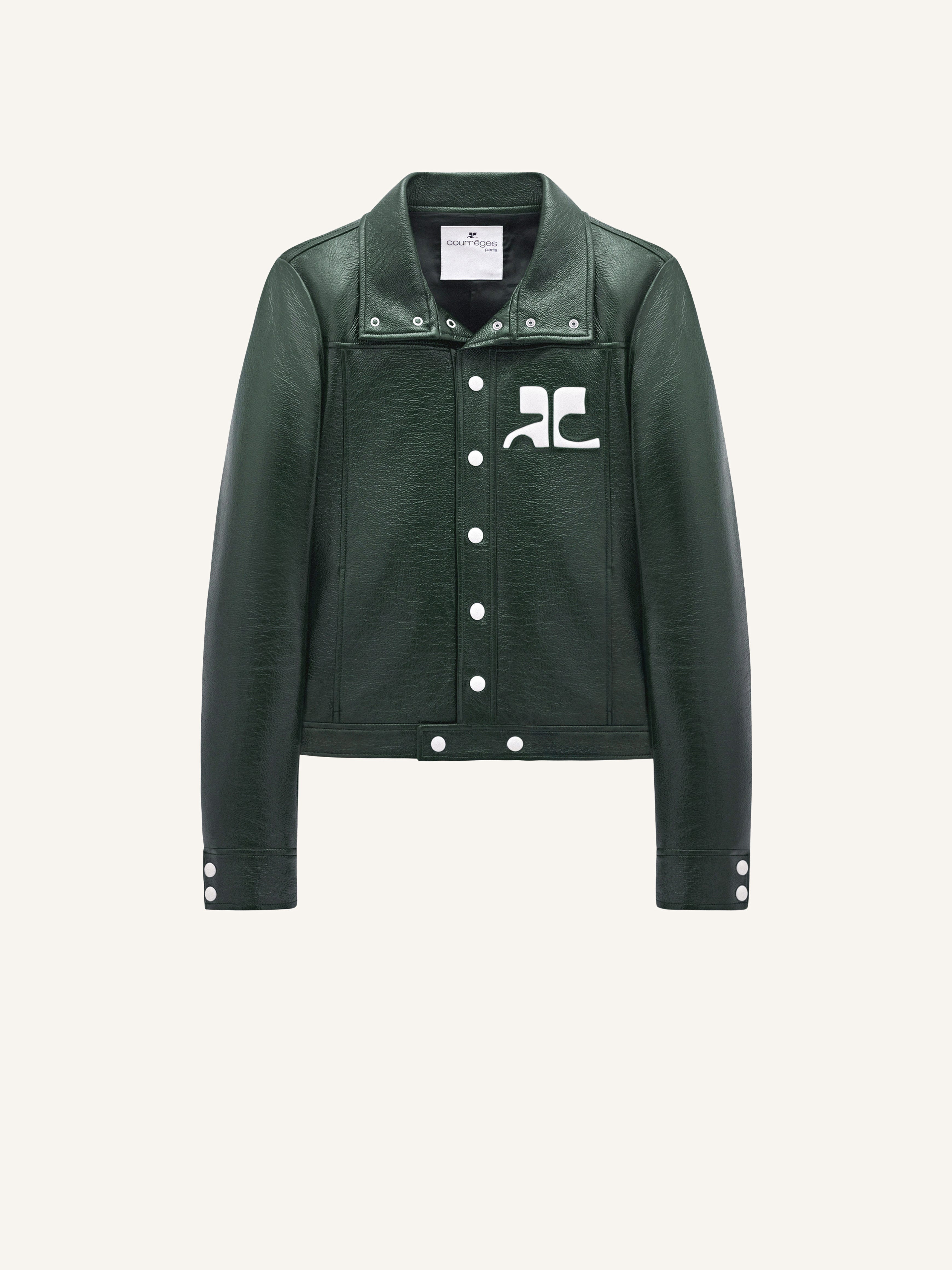 Inspired by the house's emblematic 1971 style, this iconic vinyl jacket features a white AC logo inlaid on the chest. With two side pockets and a press buttons closure in the middle front and on the cuffs, as well as a high collar. This model is lined. The cut of the vinyl jacket from the Reeditions collection is close to that of the iconic model from 1971. It is a tight fit and was designed to be worn open. For more ease, we recommend that you choose the next size up from your usual size. DETAILS Composition : 88% COTON 10% POLYURETHANE 2% ELASTHANE 55% POLYAMIDE/NYLON 25% POLYURETHANE 20% ELASTHANE 100% CUPRO Color : Dark green Item code : PERCBL017VY00148081