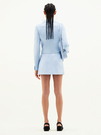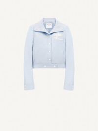 Inspired by the house's emblematic 1971 style, this iconic vinyl jacket features a white AC logo inlaid on the chest. With two side pockets and a press buttons closure in the middle front and on the cuffs, as well as a high collar. This model is lined. The cut of the vinyl jacket from the Reeditions collection is close to that of the iconic model from 1971. It is a tight fit and was designed to be worn open. For more ease, we recommend that you choose the next size up from your usual size. DETAILS Composition : 88% COTON 10% POLYURETHANE 2% ELASTHANE 55% POLYAMIDE/NYLON 25% POLYURETHANE 20% ELASTHANE 100% CUPRO Color : Sky blue Item code : PERCBL005VY00147005