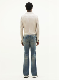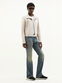 Inspired by the house's emblematic 1971 style, this iconic vinyl jacket features a white AC logo inlaid on the chest. With two side pockets and a press buttons closure in the middle front and on the cuffs, as well as a high collar. This model is lined. The cut of the vinyl jacket from the Reeditions collection is close to that of the iconic model from 1971. It is a tight fit and was designed to be worn open. For more ease, we recommend that you choose the next size up from your usual size. DETAILS Composition : 88% COTON 10% POLYURETHANE 2% ELASTHANE 55% POLYAMIDE/NYLON 25% POLYURETHANE 20% ELASTHANE 100% CUPRO Color : Mastic Item code : PERCBL017VY00149100