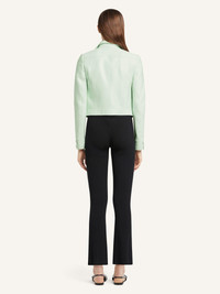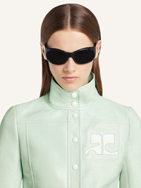 Iconic vinyl jacket with stand-up collar, long sleeves and lined interior. Two side pockets and inlaid white AC logo on chest. The model is 1.79m and wears a size 36. DETAILS Composition: 88% cotton, 10% polyurethane, 2% elastane Country of Manufacture: SK SKU: 223CBL005VY00147038 Color: Light mint