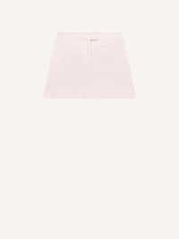 Vinyl miniskirt with white embroidered AC logo on the front. Closure fly style Courrèges with zip and white lacquered pressure. Darts in the back. Lined model. DETAILS Composition : 88% COTON 10% POLYURETHANE 2% ELASTHANE 100% CUPRO Color : Light pink Item code : PERCJU001VY00145009