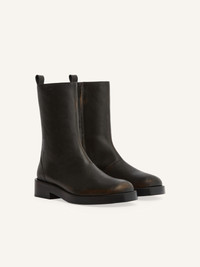 Calf leather rider mid boots with internal zipper and elastic on the side. Leather lining. Back leather loop with metal AC logo on the back. Stem: 27 cm Heel: 4.5 cm DETAILS Composition: 100% calfskin Country of Manufacture: IT SKU: VESSAB012CV00181989 Color: Chocolate Black
