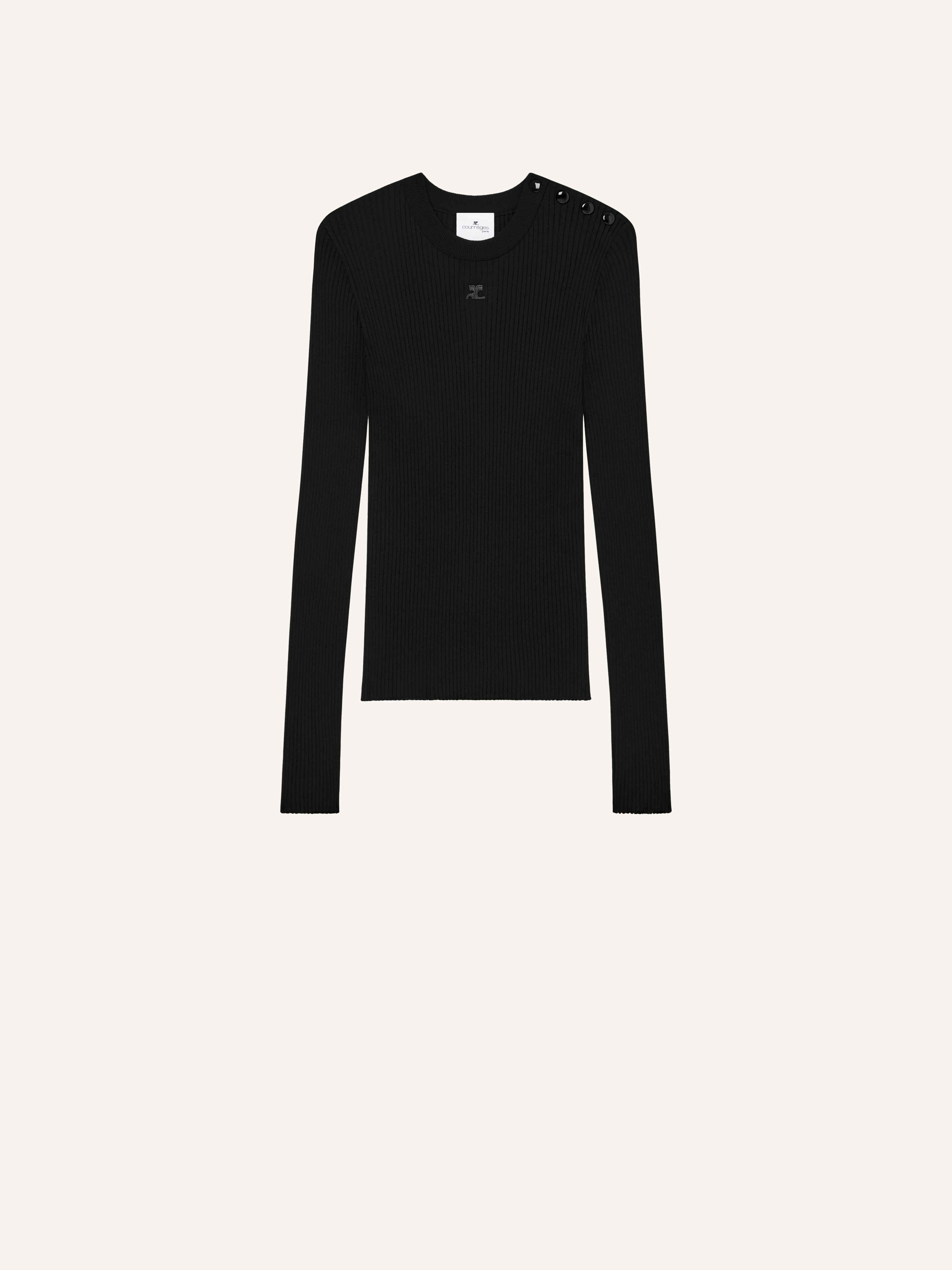 Long-sleeved fitted rib knit sweater with shoulders snaps and AC logo below neckline. The model is 1.75m tall and wears a size S. DETAILS Composition: 70% viscose, 30% polyester Country of Manufacture: BG SKU: VESMPU187FI00019999 Color: Black