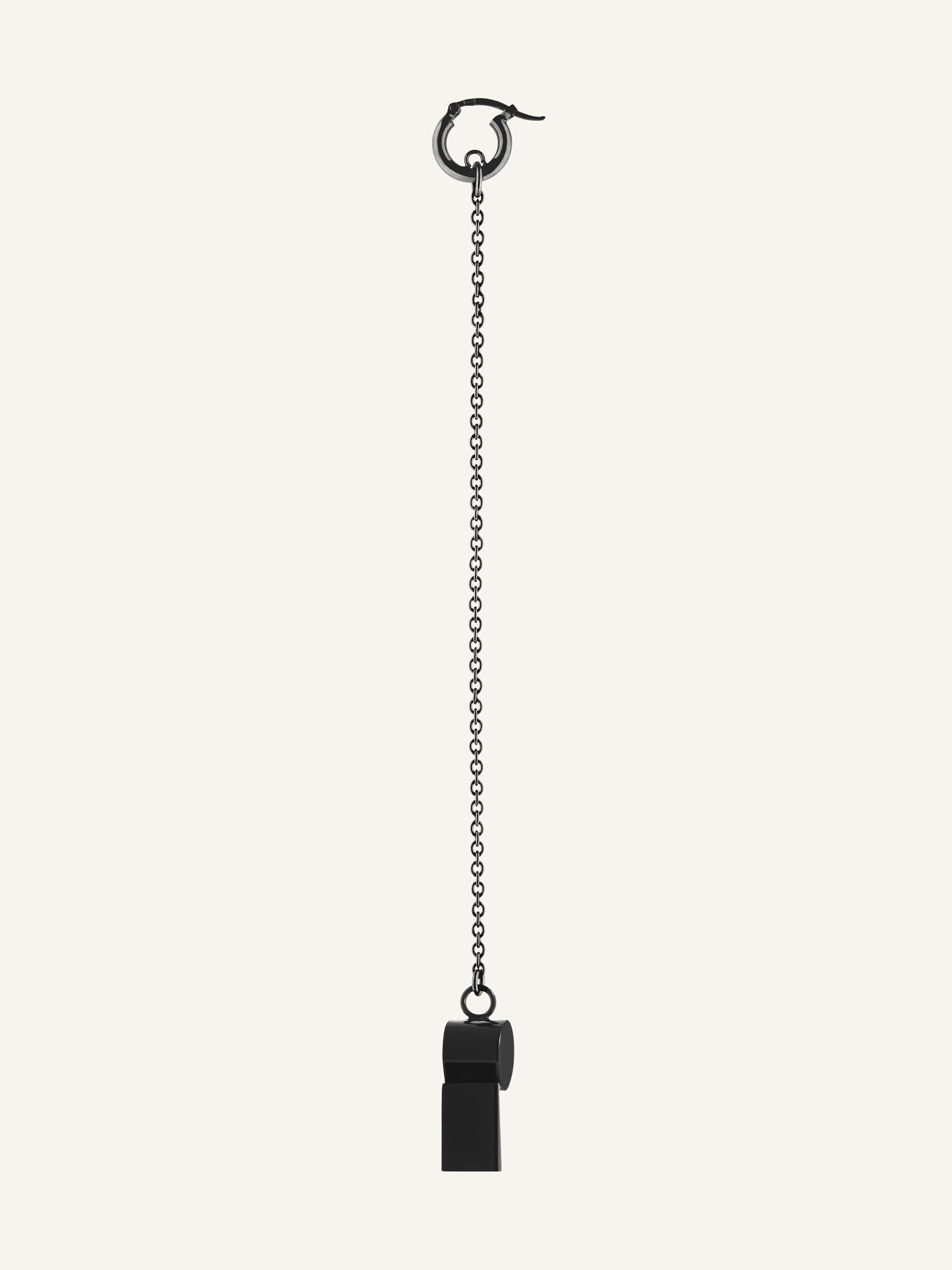 Black-plated brass single earring with chain and whistle pendant. AC logo engraved on side and bayonet clasp for pierced ears. DETAILS Composition: 100% brass Country of Manufacture: IT SKU: 425BBO095LA00019999 Color: Black