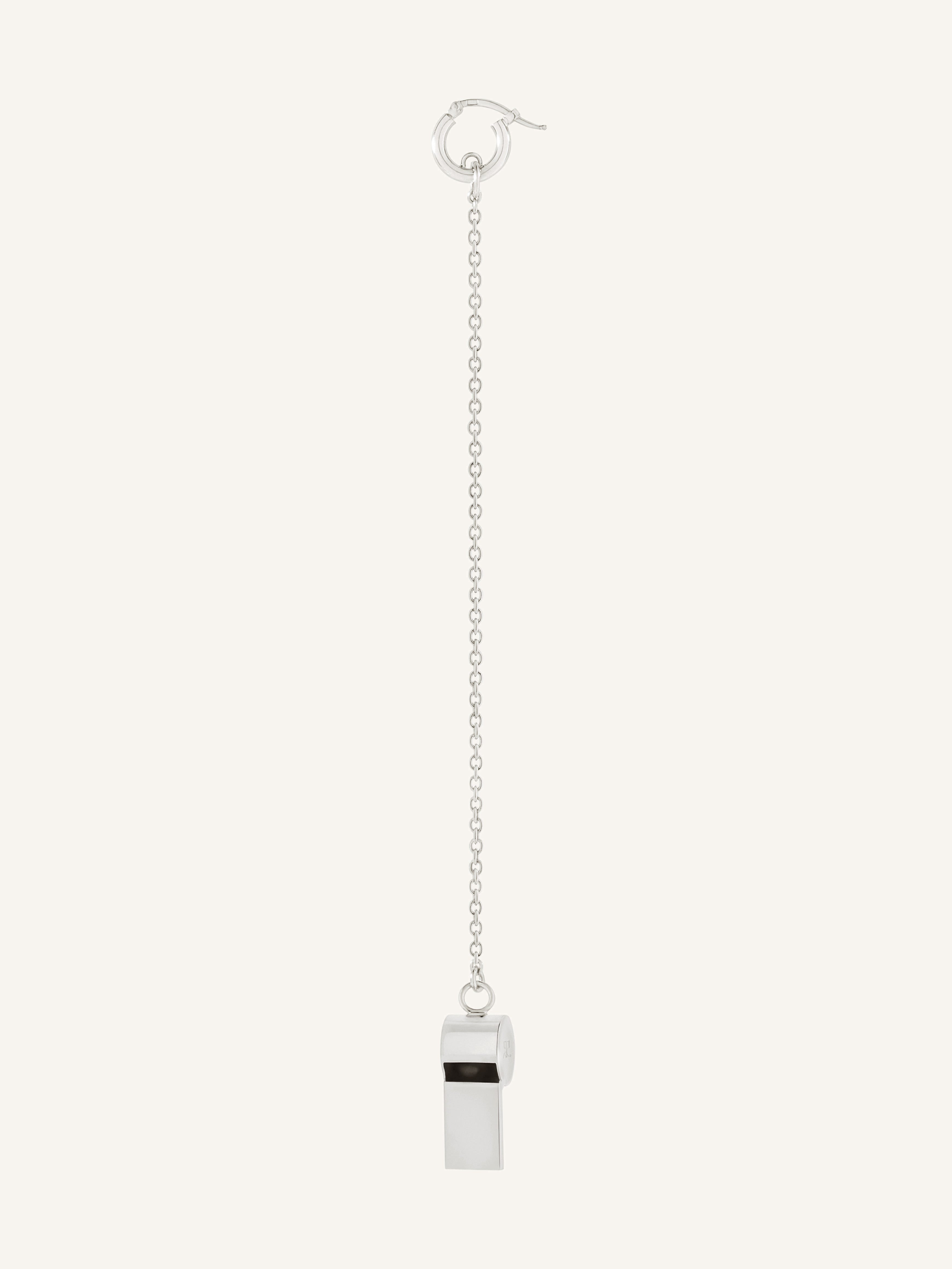 Silver-plated brass single earring with chain and whistle pendant. AC logo engraved on side and bayonet clasp for pierced ears. DETAILS Composition: 100% brass Country of Manufacture: IT SKU: 425BBO095LA00019000 Color: Silver