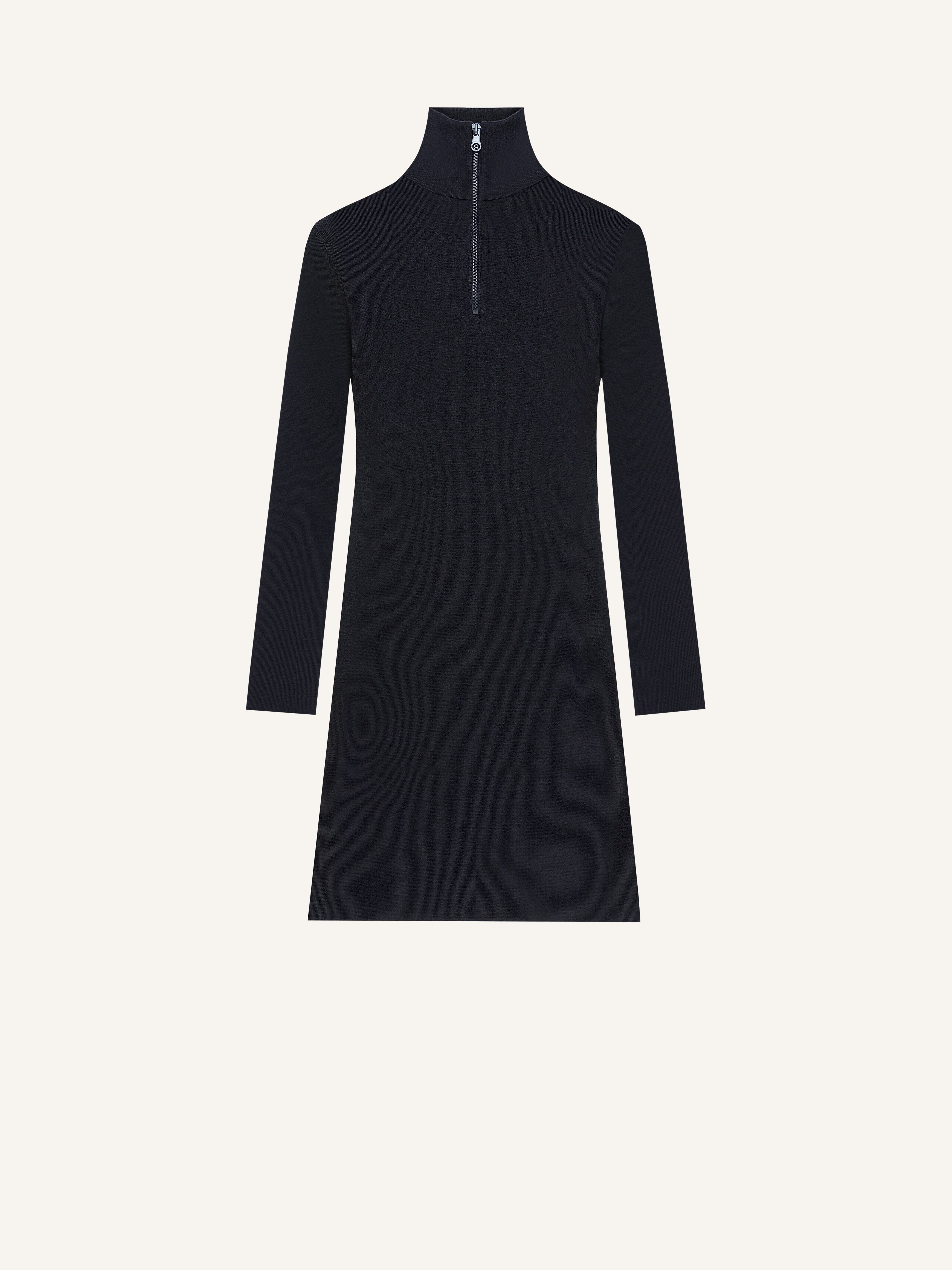Knit zipped mockneck short dress with AC logo on chest. The model is 1.77m tall and wears a size S. DETAILS Composition: 100% merino wool Country of Manufacture: PT SKU: 325MRO691FI00717075 Color: Navy