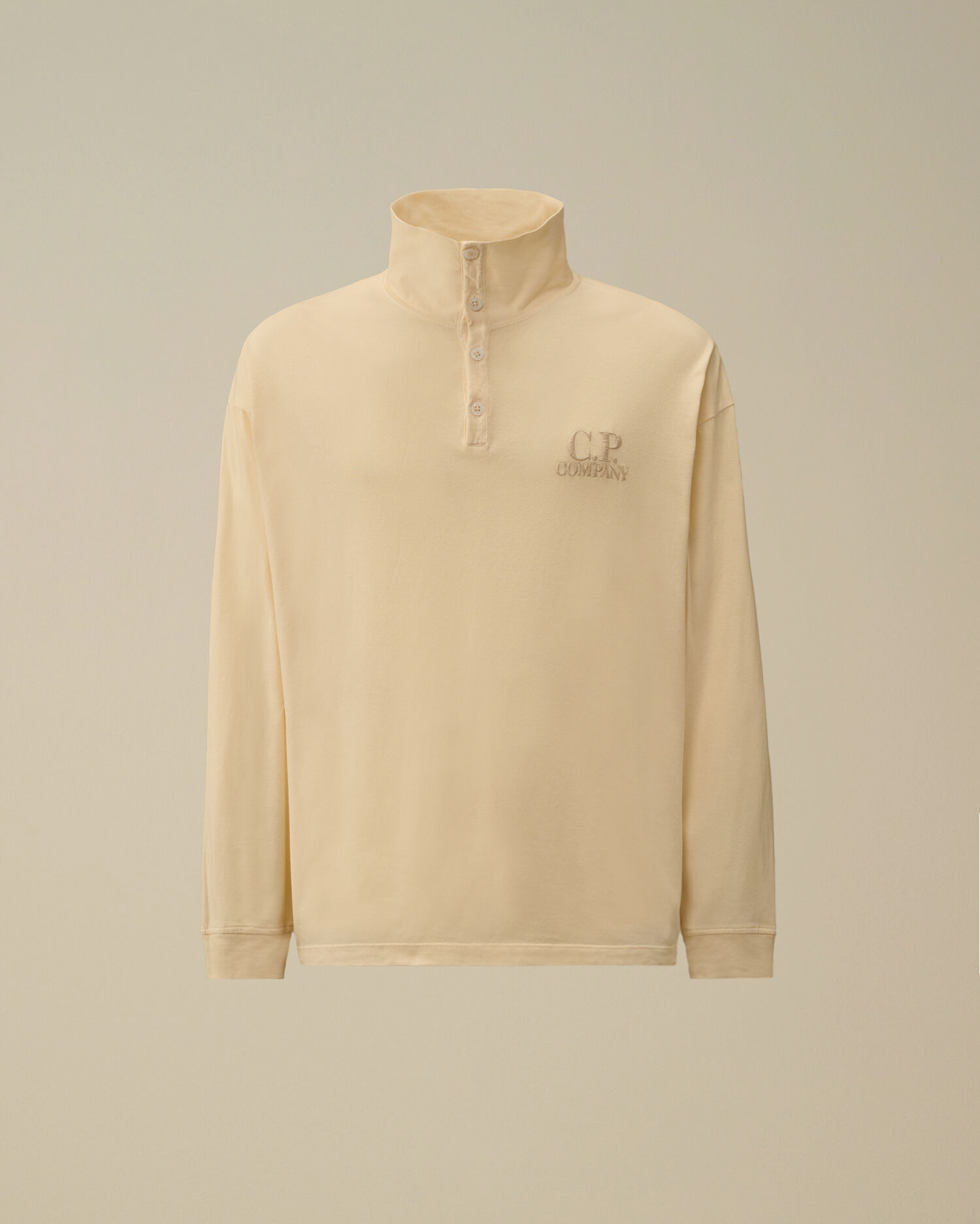 Long sleeve polo crafted in 20/1 jersey, a mid-weight cotton fabric. The polo features a stand-up collar with a four-button placket, a chest embroidered logo detail, and side vents. Garment dyed. Boxy fit. - Stand-up collar with four-button placket - Chest embroidered logo detail - Side vents - Garment dyed - Boxy fit CARE & COMPOSITION Care - Wash max 30°C - Mild process - Do not bleach - Do not tumble dry - Ironing maximum temperature 110°C - without steam - Do not dry clean - Flat dry in the shade - Wash separately - Wash inside out - Iron inside out - Do not iron decorations - Dry inside out - Do not expose the garment to direct sunlight or artificial light Composition - External fabric: 100% Cotton SIZE & FITTING - Fits true to size, take your normal size - Model is 186 cm-6' 1" / 98-100 cm chest and is wearing a size L PRODUCT PASSPORT PRODUCT - Weaving: Italy - Dyeing: Italy - Confection: Italy PACKAGING - Minimum percentage of recycled materials 70%