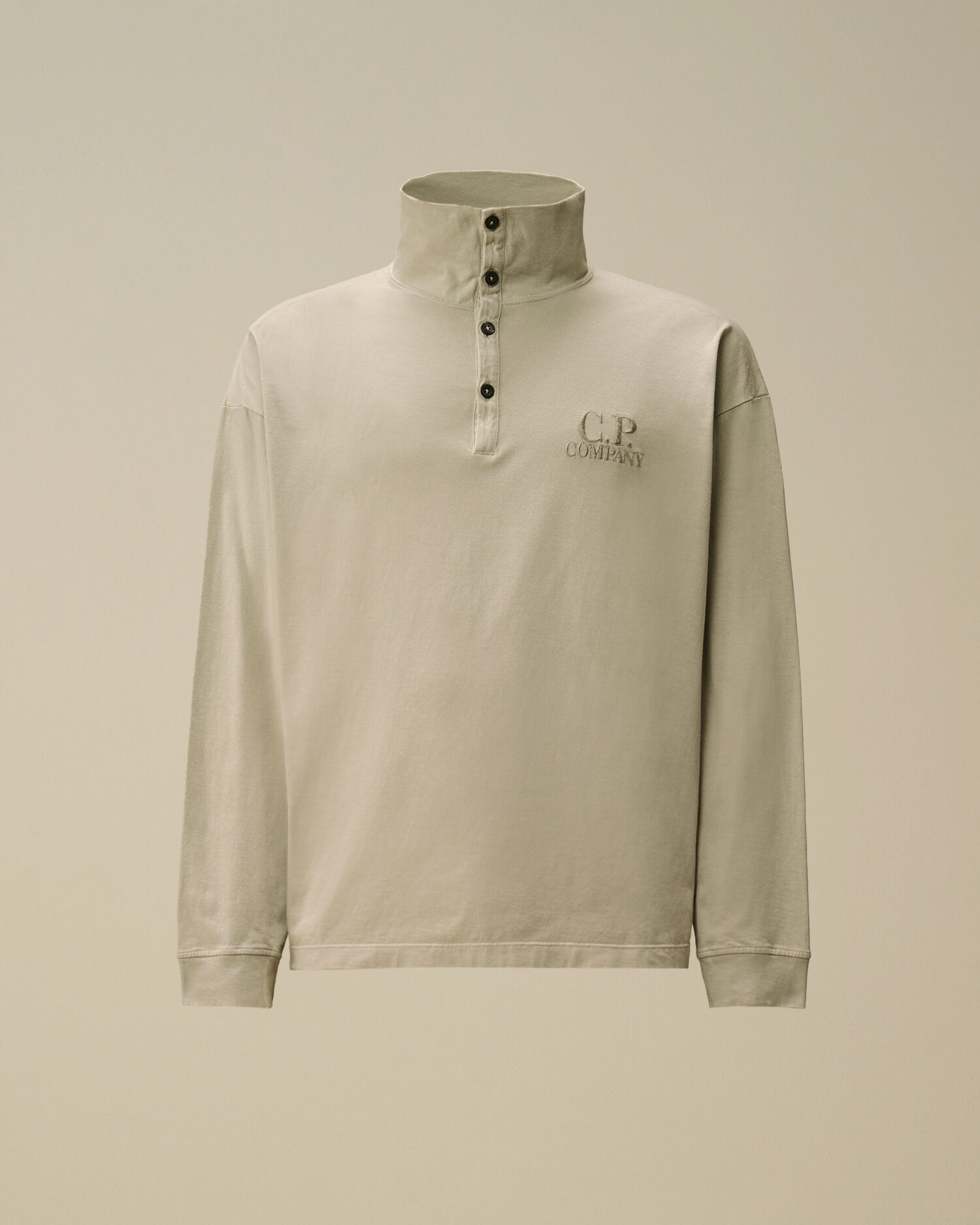 Long sleeve polo crafted in 20/1 jersey, a mid-weight cotton fabric. The polo features a stand-up collar with a four-button placket, a chest embroidered logo detail, and side vents. Garment dyed. Boxy fit. - Stand-up collar with four-button placket - Chest embroidered logo detail - Side vents - Garment dyed - Boxy fit CARE & COMPOSITION Care - Wash max 30°C - Mild process - Do not bleach - Do not tumble dry - Ironing maximum temperature 110°C - without steam - Do not dry clean - Flat dry in the shade - Wash separately - Wash inside out - Iron inside out - Do not iron decorations - Dry inside out - Do not expose the garment to direct sunlight or artificial light Composition - External fabric: 100% Cotton SIZE & FITTING - Fits true to size, take your normal size - Model is 186 cm-6' 1" / 98-100 cm chest and is wearing a size L PRODUCT PASSPORT PRODUCT - Weaving: Italy - Dyeing: Italy - Confection: Italy PACKAGING - Minimum percentage of recycled materials 70%