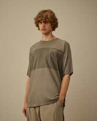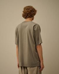 Short sleeve t-shirt crafted in 24/1 jersey, a medium-weight cotton fabric. The t-shirt features a ribbed crewneck and a chest open pocket with an embroidered logo detail. The unique print technique, applied to the finished garment, interacts with the hidden embroidery inside the pocket. As the print overlaps, the logo subtly emerges on the outer surface, creating a distinctive layered effect. Garment dyed. Made and printed in Italy. T-fit. - Ribbed crewneck - Chest open pocket with embroidered logo detail - Garment dyed - Screen-printed on the finished garment - Made and printed in Italy - T-fit CARE & COMPOSITION Care - Wash max 30°C - Mild process - Do not bleach - Do not tumble dry - Ironing maximum temperature 110°C - without steam - Do not dry clean - Flat dry in the shade - Wash separately - Wash with similar colours - Wash inside out - Iron inside out - Do not iron decorations - Do not expose to heat - Dry inside out Composition - External fabric: 100% Cotton SIZE & FITTING - Fits true to size, take your normal size - Model is 186 cm-6' 1" / 98-103 cm chest and is wearing a size L PRODUCT PASSPORT PRODUCT - Weaving: Turkiye - Dyeing: Italy - Confection: Italy PACKAGING - Minimum percentage of recycled materials 70%