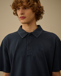 Short-sleeve polo crafted from 24/1 piquet cotton, a breathable fabric that ensures everyday comfort. The model features a classic collar with hidden three-button fastening, a chest embroidered logo patch, and side vents. Cold pigment dyed for a subtly distressed finish and unique tonal variations. Made in Italy. Regular fit. - Classic collar - Hidden three-button fastening - Chest embroidered logo patch - Side vents - Made in Italy - Pigment dyed CARE & COMPOSITION Care - Wash max 30°C - Do not bleach - Do not tumble dry - Ironing maximum temperature 110°C - without steam - Do not dry clean - Flat dry in the shade - Wash separately - Wash inside out - Do not twist or wring - Iron inside out - Do not iron decorations - Dry inside out - Do not expose the garment to direct sunlight or artificial light Composition - External fabric: 100% Cotton SIZE & FITTING - Model is 186 cm-6' 1" and is wearing a size L - Fit: Regular PRODUCT PASSPORT PRODUCT - Weaving: Italy - Dyeing: Italy - Confection: Italy PACKAGING - Minimum percentage of recycled materials 70%