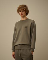 Brushed and Emerized Diagonal Fleece Crewneck Logo Sweatshirt