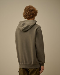 Hooded sweatshirt crafted in brushed and emerized diagonal-weave gauzed fleece. The soft fabric ensures comfort and ease of movement. The sweatshirt features an adjustable hood, C.P. Company’s iconic Lens, and a kangaroo pocket. Finished with ribbed cuffs and hem. The Resist Dyed process uses direct dyes on garments pre-treated with cationic resin, creating an irregular colour effect that enhances texture and details. Regular fit. - Adjustable hood - Lens detail - Kangaroo pocket - Ribbed cuffs and hem - Resist dyed - Regular fit CARE & COMPOSITION Care - Wash max 30°C - Do not bleach - Do not tumble dry - Ironing maximum temperature 150°C - Do not dry clean - Flat dry in the shade - Wash separately - Wash with similar colours - Wash inside out - Iron inside out - Do not iron decorations - Remove detachable accessories before washing - Do not expose the garment to direct sunlight or artificial light Composition - External fabric: 100% Cotton SIZE & FITTING - Fits true to size, take your normal size - Model is 186 cm-6' 1" / 98-103 cm chest and is wearing a size L PRODUCT PASSPORT PRODUCT - Weaving: Turkiye - Dyeing: Turkiye - Confection: Turkiye PACKAGING - Minimum percentage of recycled materials 70%