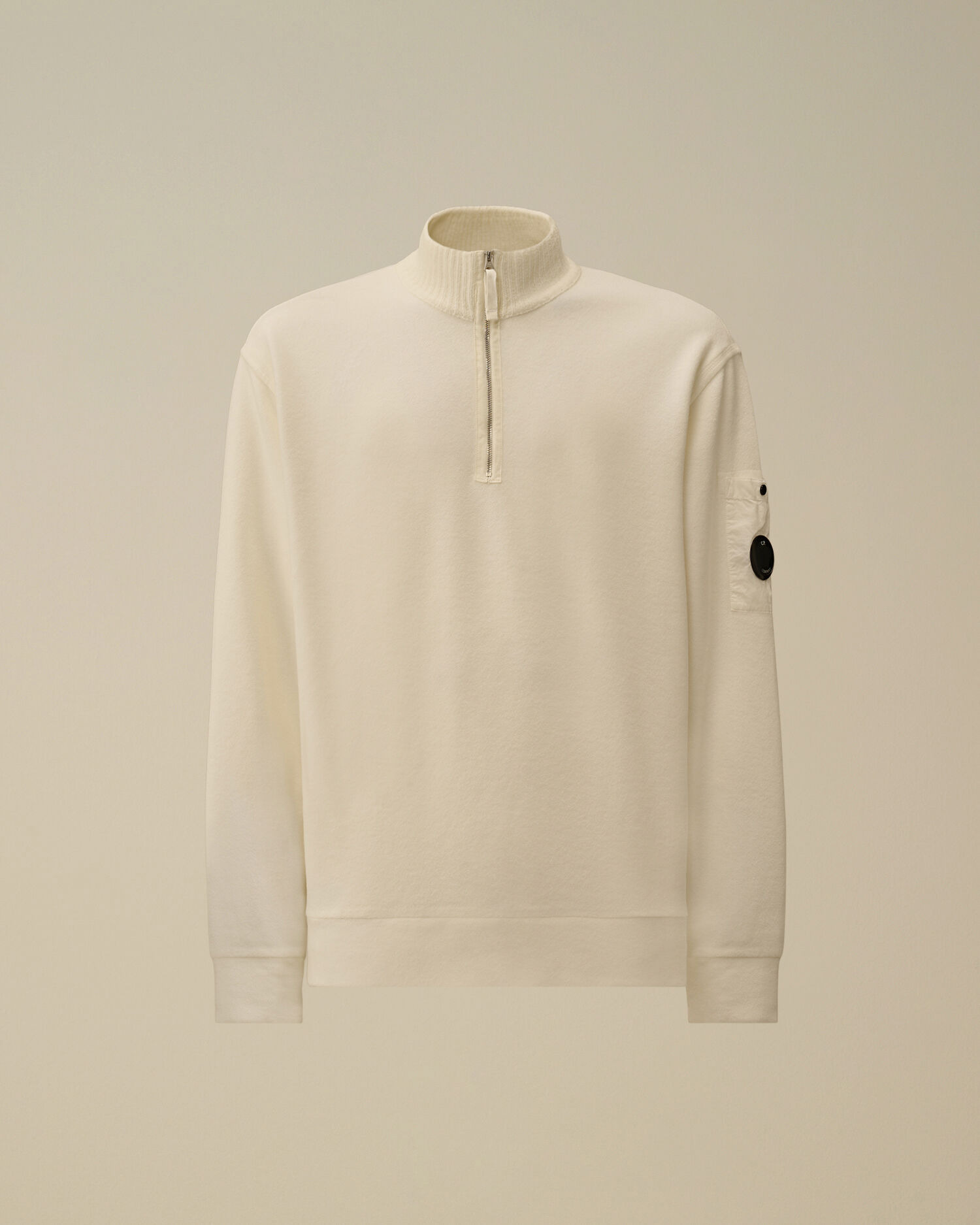 Half zip sweatshirt crafted in brushed and emerized diagonal cotton with woven twill inserts. The sweatshirt features a ribbed collar and C.P. Company’s iconic Lens. Garment dyed. Regular fit. - Ribbed collar - Half zip fastening - Lens detail - Garment dyed - Regular fit CARE & COMPOSITION Care - Wash max 30°C - Mild process - Do not bleach - Do not tumble dry - Ironing maximum temperature 150°C - Do not dry clean - Dry flat - Wash separately - Wash with similar colours - Wash inside out - Iron inside out - Remove detachable accessories before washing - Do not expose the garment to direct sunlight or artificial light Composition - External fabric: 100% Cotton SIZE & FITTING - Fits true to size, take your normal size - Model is 186 cm-6' 1" / 98-103 cm chest and is wearing a size L PRODUCT PASSPORT PRODUCT - Weaving: Turkiye - Dyeing: Turkiye - Confection: Turkiye PACKAGING - Minimum percentage of recycled materials 70%