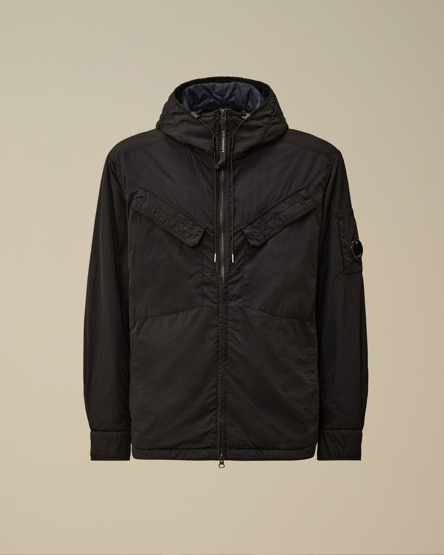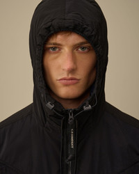 Hooded overshirt crafted in Chrome-R, a 100% recycled, shiny multifilament nylon made from production scraps, reprocessed into a new fibre certified by the Global Recycled Standard (GRS). The overshirt features C.P. Company’s iconic Lens, a two-way full zip fastening, and both chest and side flap snap pockets. Finished with adjustable snap cuffs. Wadding padded and garment dyed with anti-drop treatment. Regular fit. - Adjustable hood - Two-way full zip fastening - Chest and side flap snap pockets - Lens detail - Adjustable snap cuffs - Garment dyed - Wadding padded - Regular fit CARE & COMPOSITION Care - Wash max 30°C - Mild process - Do not bleach - Do not tumble dry - Ironing maximum temperature 110°C - without steam - Do not dry clean - Line dry - Wash inside out - Remove detachable accessories before washing Composition - External fabric: 100% Polyamide / Nylon - Lining: 100% Polyamide / Nylon - Padding (Fiber): 100% Polyester SIZE & FITTING - Fits true to size, take your normal size - Model is 186 cm-6' 1" / 98-103 cm chest and is wearing a size L PRODUCT PASSPORT PRODUCT - Weaving: China - Dyeing: China - Confection: China - Product contains at least 65% of recycled material - Releases plastic microfibers into the environment during washing PACKAGING - Minimum percentage of recycled materials 70%