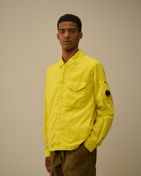 Overshirt crafted in Chrome-R, a 100% recycled, shiny multifilament nylon made from production scraps, reprocessed into a new fibre certified by the Global Recycled Standard (GRS). The overshirt features C.P. Company’s iconic Lens, a hidden two-way full zip fastening with flap snap closure, and a chest snap pocket. Finished with adjustable snap cuffs and a cotton twill lining. Garment dyed with anti-drop treatment. Regular fit. - Classic collar - Hidden two-way zip fastening with flap snap closure - Chest flap snap pocket - Lens detail - Adjustable snap cuffs - Garment dyed - Cotton Twill lining - Regular fit CARE & COMPOSITION Care - Wash max 30°C - Mild process - Do not bleach - Do not tumble dry - Ironing maximum temperature 110°C - without steam - Do not dry clean - Line dry - Wash inside out - Remove detachable accessories before washing Composition - External fabric: 100% Polyamide / Nylon - Lining: 100% Cotton - Secondary lining: 100% Polyamide / Nylon SIZE & FITTING - Fits true to size, take your normal size - Model is 186 cm-6' 1" / 98-103 cm chest and is wearing a size L PRODUCT PASSPORT PRODUCT - Weaving: China - Dyeing: China - Confection: China - Product contains at least 45% of recycled material - Releases plastic microfibers into the environment during washing PACKAGING - Minimum percentage of recycled materials 70%