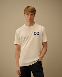 Short-sleeve t-shirt crafted from 20/1 compact cotton jersey. The model features a ribbed crewneck and a chest-printed logo, hand-sprayed and faded for a distinctive finish. Made in Italy. Regular fit. - Ribbed crewneck - Hand-sprayed and faded chest printed logo - Made in Italy - Regular fit CARE & COMPOSITION Care - Wash max 30°C - Mild process - Do not bleach - Do not tumble dry - Ironing maximum temperature 110°C - without steam - Do not dry clean - Dry flat - Wash separately - Wash inside out - Iron inside out - Do not iron decorations - Do not expose to heat - Dry inside out Composition - External fabric: 100% Cotton SIZE & FITTING - Model is 186 cm-6' 1" and is wearing a size L - Fit: Regular PRODUCT PASSPORT PRODUCT - Weaving: Italy - Dyeing: Italy - Confection: Italy PACKAGING - Minimum percentage of recycled materials 70%